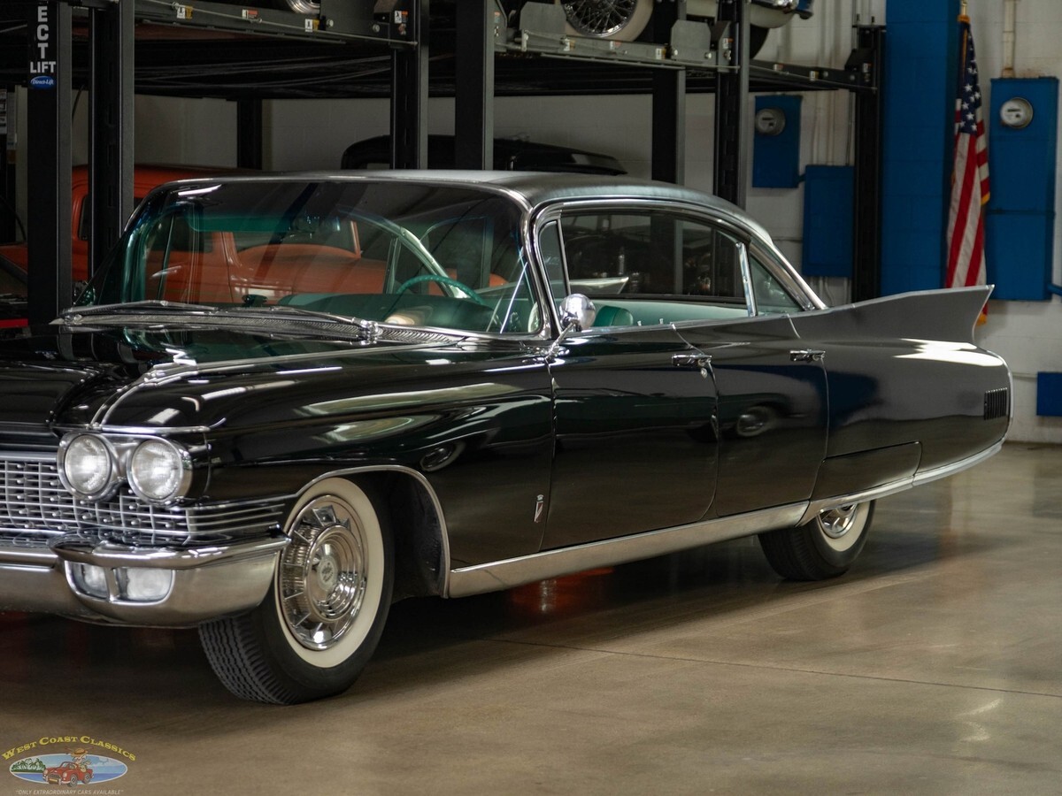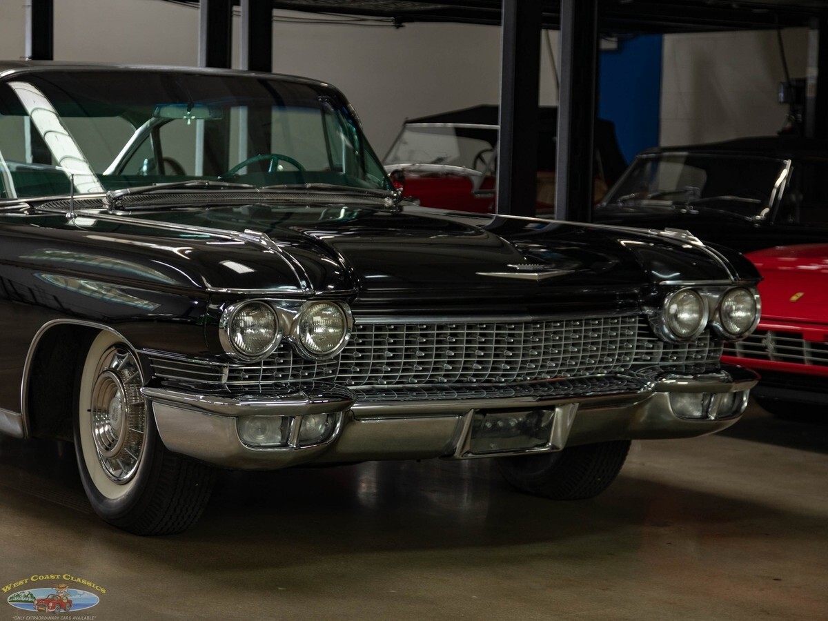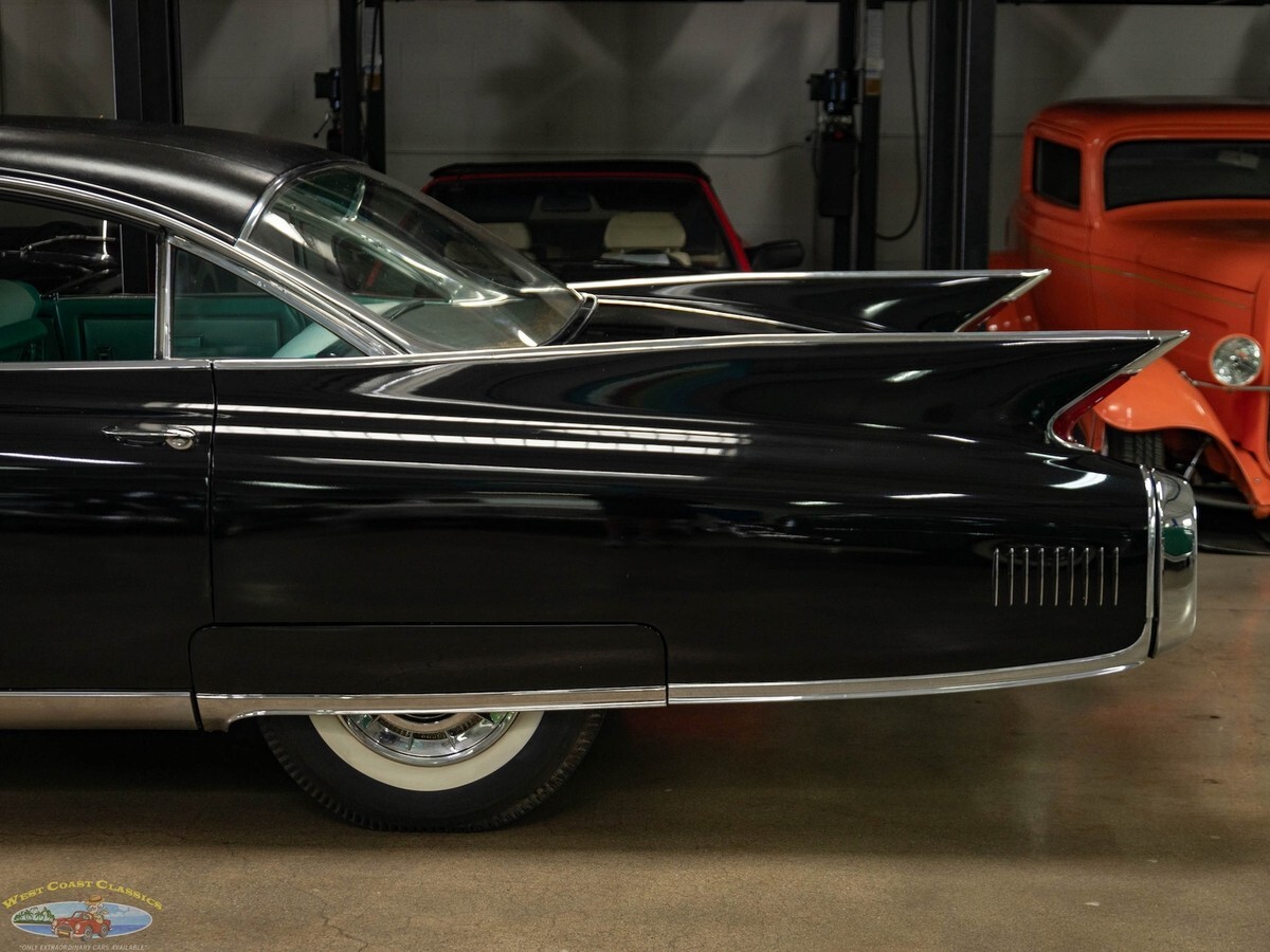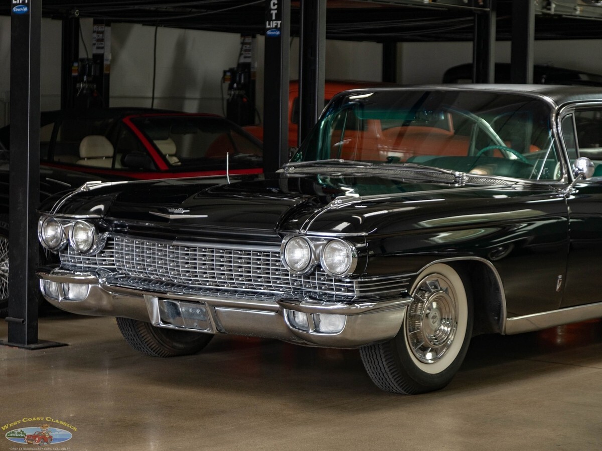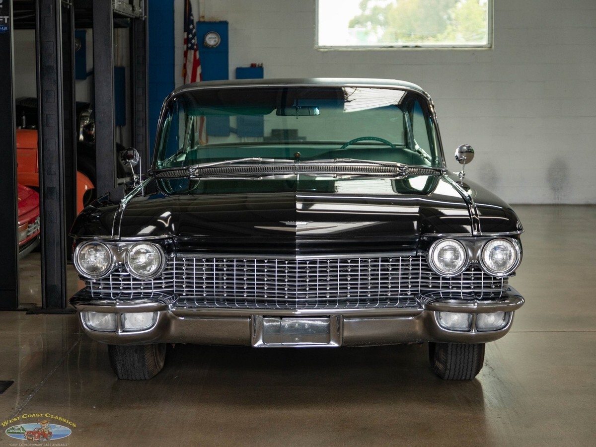 West Coast Classics are proud to present an exceptional and great daily driving and rust free example of this mostly all original 1960 Cadillac Fleetwood Sixty Special 6 Window 4 Door Hardtop in Black color paint and with its seemingly all original 'Green' fabric & leather (trim code 67) interior with its original 390/325HP 4 bbl V8 engine matched to a 'Jetaway' Hydra-matic transmission and factory options including;Air conditioning ($474)Power windowsPower vent windowsPower brakesSix-Way power seat adjustment ($85)AM radio with rear speakers ($165)Guidematic headlamp dimmers ($45)Front & rear center armrestsInterior courtesy & map lightsLeft Side Remote Outside MirrorElectric ClockRear Fender SkirtsFront Cornering LampsThere's no better example of GM's styling and engineering prowess in a four door luxury sedan model than the 1960 Cadillac Fleetwood Sixty Special - drive one like this particular example and you will see why - its hard to believe that this car was built over 60 years ago! These cars bristled with the latest in modern appointments and had few rivals in the luxury market and were purchased only by the very privileged elite.The car is mostly all original apart from one repaint and the original 390/325HP 4 barrel V8 engine is extremely strong and powerful and and this particular car drives absolutely magnificently - does not miss a beat and purrs like a kitten - drives straight as an arrow with no strange road wobbles, shakes or rattles - a truly remarkable daily driver that will give any modern day car a run for it's money! The transmission shifts smoothly through the gears and the car is an absolute pleasure to drive! The floor boards, trunk and all the typical rust-prone areas are completely original, solid and rust-free and the car has no signs of any accidents.The car has been repainted once from its original 'Olympic White' color and boasts its seemingly all original specs 'Green' leather& fabric interior and Green carpeting, headliner and trim, all of which are still in quite exceptional condition throughout for their age (over 65 years old!) The car boasts its original trunk lining, spare wheel and jack in the truck!This is a rare opportunity to own a great daily driving example of a very beautiful 1960 Cadillac Fleetwood Sixty Special showing pride of ownership and fully loaded with factory options including air conditioning and in great driving and looking condition!