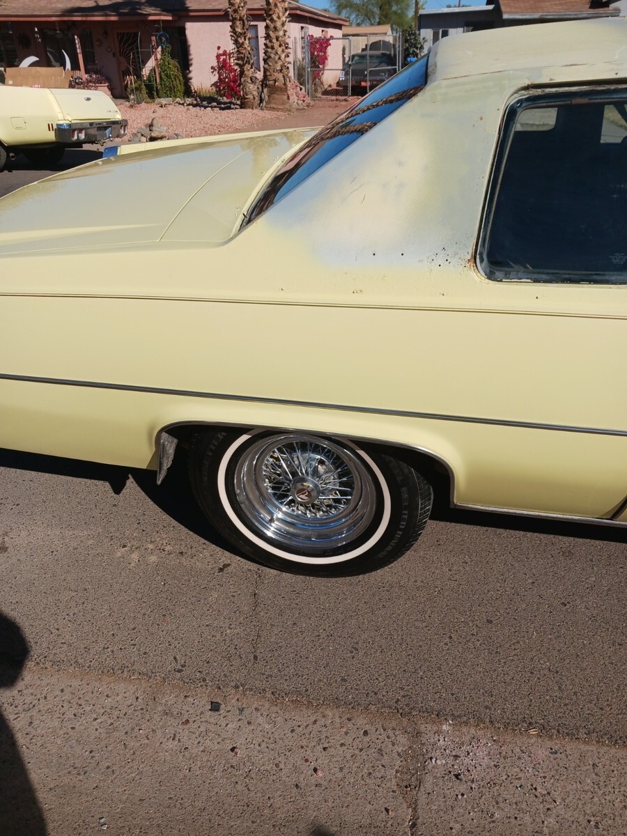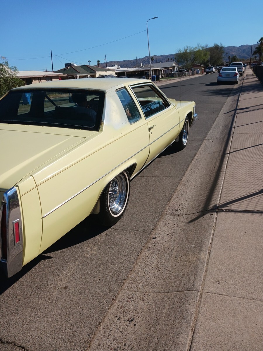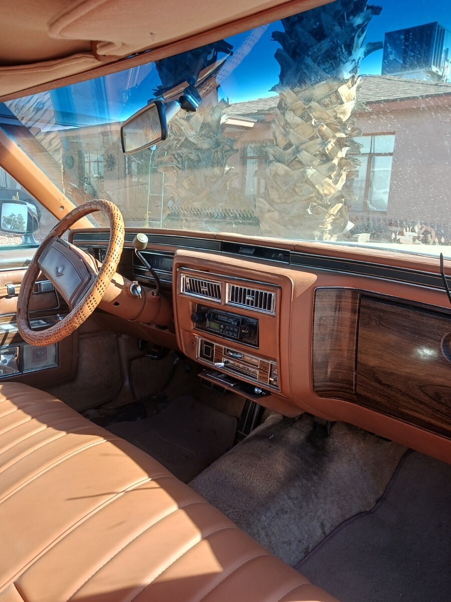 pretty clean old school cadillac the person I purchased from. were restoring it paint is fairly new front seat redone rest of interrior is original electronic windows do work electronic seats do work ac blows cold must see in person