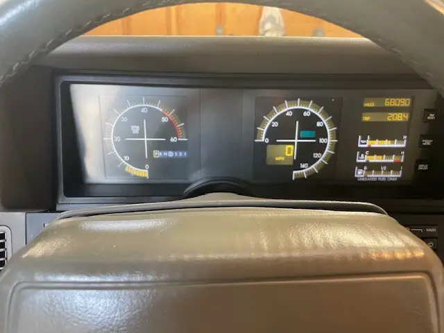 The fuel gauge does not work. I set the trip counter and refuel at about 200 miles. The passenger side window goes down about 1/3 and slowly stops. Probably the motor which is about $80 through Allante Source in Maimi. Dick Hussey will have anything and everything you need for Allante’s and is a great source of knowledge and expertise. Must exercise the door look several times to lock and unlock the passenger door from the driver’s side. Also not a big deal.
