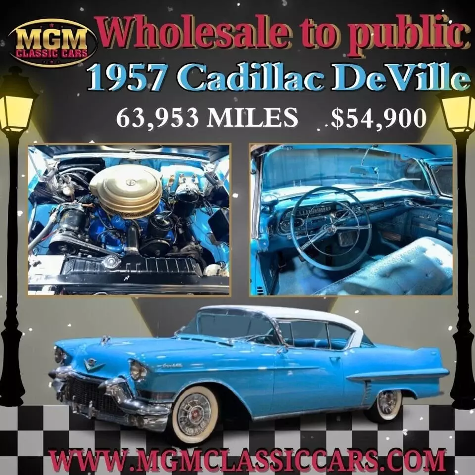 Step into the timeless elegance of this beautifully restored 1957 Cadillac Coupe De Ville. Meticulously brought back to its former glory in 2010, this classic vehicle is a testament to the dedication and craftsmanship that went into its revival. Discover the power that lies under the sleek exterior of this Coupe De Ville. Its matching-numbers original 365/300hp engine, perfectly paired with a factory 4-speed Hydramatic transmission, ensures a thrilling and smooth driving experience. As you glide along the open road, you'll feel the true essence of luxury and performance come alive with only 63,xxx miles! The attention to detail in the restoration process is evident in every aspect of this Cadillac. Stripped down to bare metal, it was then meticulously primed with epoxy and finished in an exquisite Tahoe Blue, capturing the essence of its era. This Coupe De Ville proudly retains its factory air conditioning, providing you with comfort even during the warmest of drives. Equipped with power steering and power brakes, this Cadillac offers effortless maneuverability, making each journey a pleasure. Step inside to be greeted by a beautifully preserved interior, showcasing its original appearance. Every detail has been meticulously cared for, allowing you to experience the luxury and refinement that this classic car exudes. Originally hailing from Arizona, this Coupe De Ville has been lovingly restored to its former glory, ensuring its timeless beauty and performance will continue to captivate for years to come. It is a testament to the enduring allure of Cadillac and a reminder of the golden age of automotive design. Indulge in the nostalgia and elegance of this 1957 Cadillac Coupe De Ville. With its striking presence, powerful performance, and impeccable restoration, it stands as a testament to the craftsmanship and timeless beauty that defines classic American automobiles!! BUY IT NOW!! $79,995.00 Financing/low monthly payments 10% down/Payment low as $833.68 Delivery right to your garage door! We are now OPEN to the PUBLIC! Visit our 35,000 sq ft showroom MGM Classic Cars LLC 150 S. Church Street Addison IL 60101 Mon-Fri 9a-5p Sat 9-2p Vehicle has been inspected Call/Text for all info 847-848-1850 Appointment Only