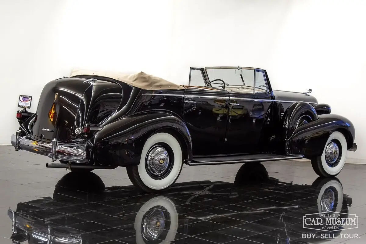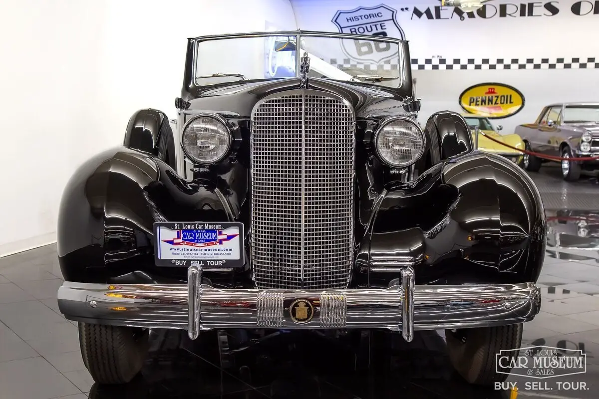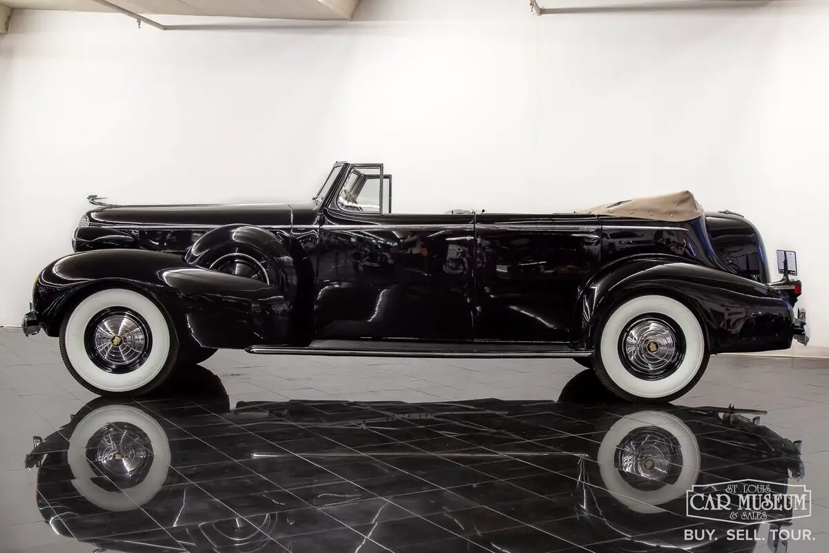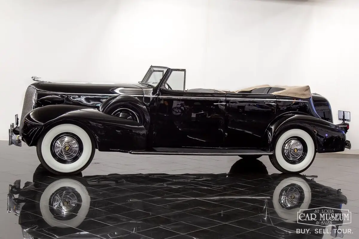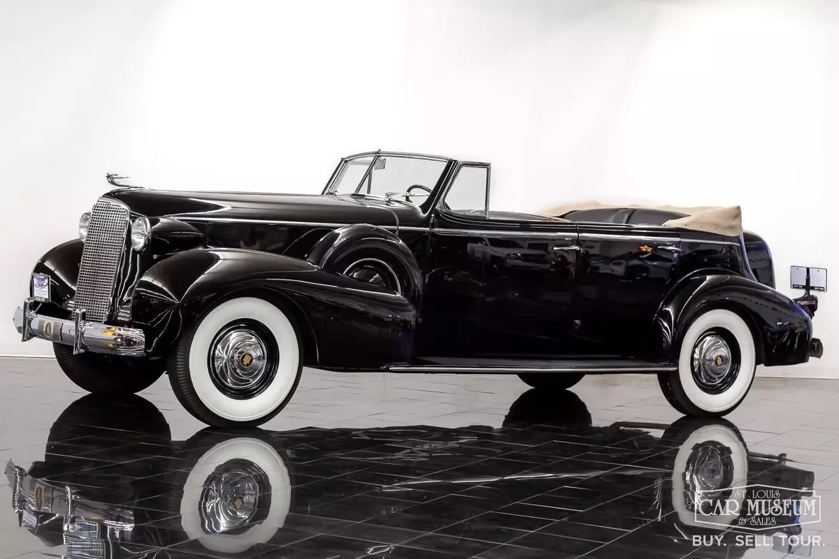 Representing the final year Cadillac offered its luxurious V12 engine following its original introduction in 1931. Production at Cadillac was at an all-time high coming off its 1936 model year, and sales continued to double for 1937, indicating signs that the Great Depression was finally behind them. With only Packard giving them relentless competition in the top spot in the luxury automotive marketplace, Cadillac continued to dominate with their engineering prowess offering multiple model lines on several chassis platforms. The larger V12 and V16 engines were reserved for the 138" wheelbase, with very few ever produced. Total V12 production across all models totaled just 474 units, while the V16 was tallied just under 50 units annually. Offered here is a 1937 Cadillac Series 85 Twelve 5-Passenger Convertible Sedan finished in classic Black over Black Leather interior, with Tan Stayfast cloth convertible top. It represents one of approximately twenty Series 37-8529 examples built by Fleetwood for the 1937 model year, powered by a 150-horsepower 368ci V12 engine (#4130181) mated to a 3-speed manual transmission. This Cadillac is highlighted with further rarity by possessing the Imperial Glass Divider option separating the driver compartment from the rear passenger compartment. Features and equipment options include dual side-mounted spare tires with painted metal covers, wide whitewall Firestone Deluxe Champion tires measuring 7.50-16, full chrome wheel covers, bustle-back trunk compartment, folding sun visors, cowl ventilation, and full dash instrumentation that includes an inoperable clock and AM radio. This example hails from a longtime collector based in the Indiana area, where the car was cosmetically and mechanically restored to be a respectable short distance touring and parade example. It was fully repainted many years ago, along with all new leather interior seating and door panel surfaces, complete folding convertible top with soft boot cover, along with tan carpeting throughout. It has been fully rewired, along with a fully rebuilt engine, complete with valve job using Egge valves & valve guides, cam rollers, & springs; and conversion to more reliable Carter updraft carburetors with auxiliary electric fuel pump. Recent service includes new spark plugs, rebuilt carburetors with kits supplied from the Carburetor Shop, all new engine & transmission mounts, rebuilt water pump, fresh engine oil, fuel sender floats, and stainless steel wiper blades. It continues to run and drive very well, making for a terrific addition to any collection. The St. Louis Car Museum markets vehicles internationally and can assist with shipping recommendations. When you factor in the rarity of these production 12-cylinder Convertible Sedans, chances are you will not see another on the market anytime soon! We encourage prospective buyers to schedule a chance to review it in person and we look forward to working with all interested parties. Thanks for looking!
