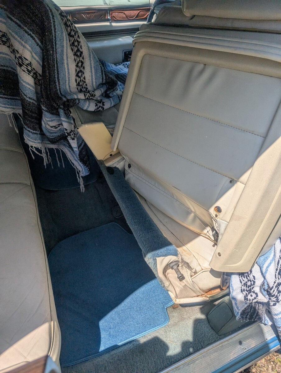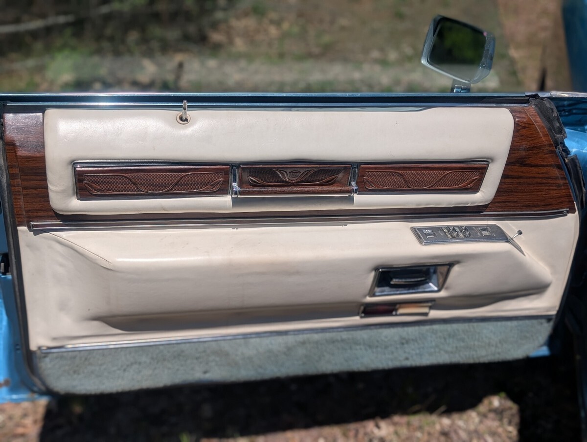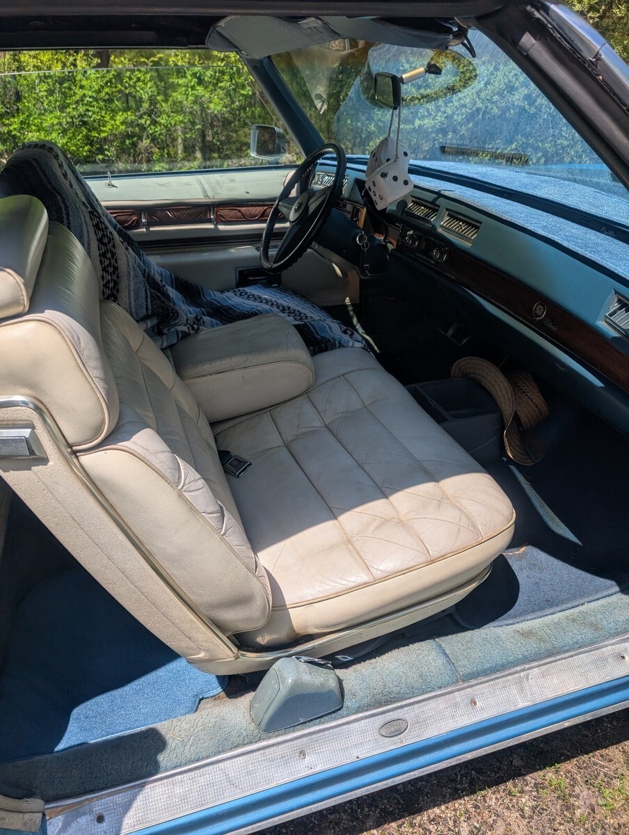 Last of the big car convertibles. Runs and drives nice. White leather interior. White canvas convertible top is in very good condition. Power windows and seats. Frame and floor pans are solid. Trunk is solid. There is some small, minor rust bubbling on the passenger's side rear quarter panel and on the upper trunk deck. Badging looks great. Power disc brakes are in great condition.