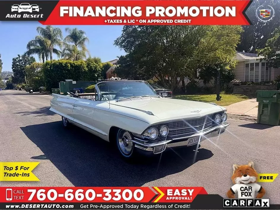 1962 Cadillac Series 62 Convertible – Overview. The 1962 Cadillac Series 62 was a luxury full-size convertible designed for comfort| style| and was part of the sixth generation of the Series 62 line and represented Cadillac’s golden era of design— with long| sleek lines| chrome accents| and fins that were more refined than in the late ’50s.. ?. ????962 Cadillac DeVille series 62 3 owner Southern California owned with $68|000 original miles finished it's of OlympicWhite color it is complete with all of its trim the Chrome isn't very good condition white convertible top rarely gets put down and there is a black leatherboot cover that matches when it's down interior is leather with 6-way power seats working correctly all windows also working correctly and have been service car has beenconverted to the new R134A refrigerant in the AC is blowing cold the original trunk still has its original material carries its Jack and spare all power items lights signals are in working conditioncar runs and drives 80 miles per hour down the highway and recently just got a brand new set of radial tires on it suspension is good as well... Read the full description on our Website at: