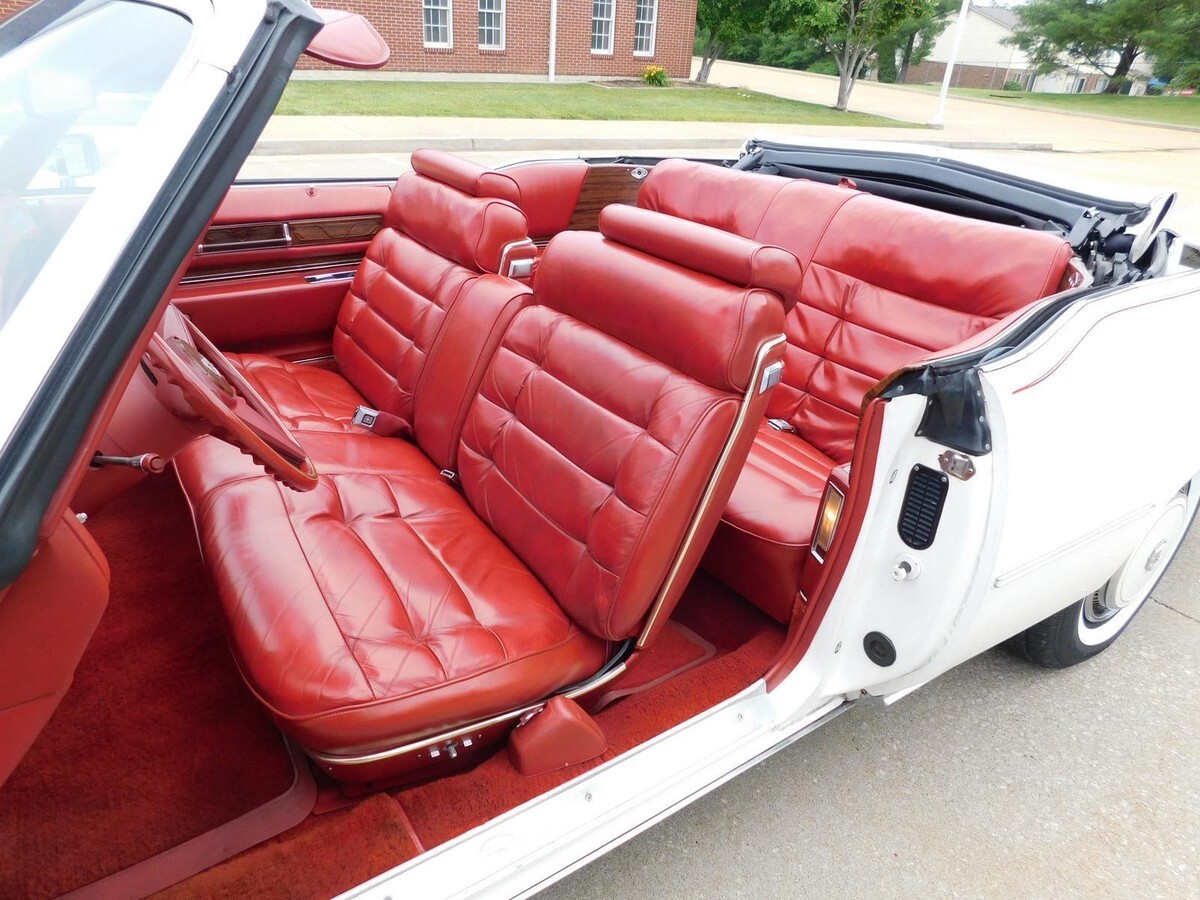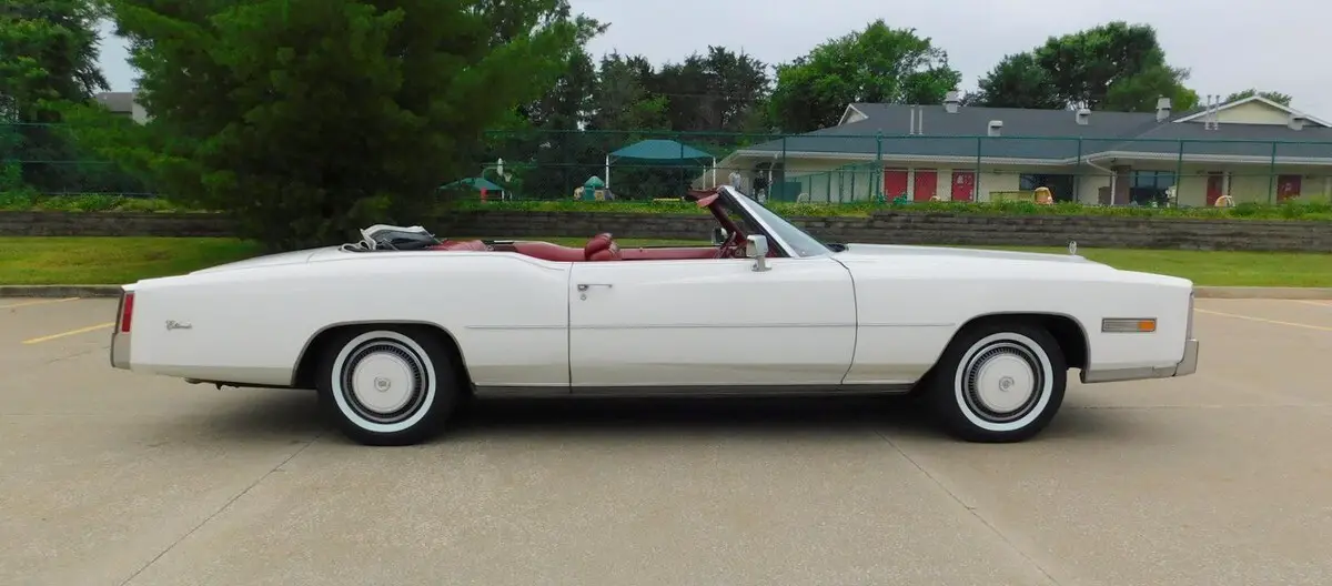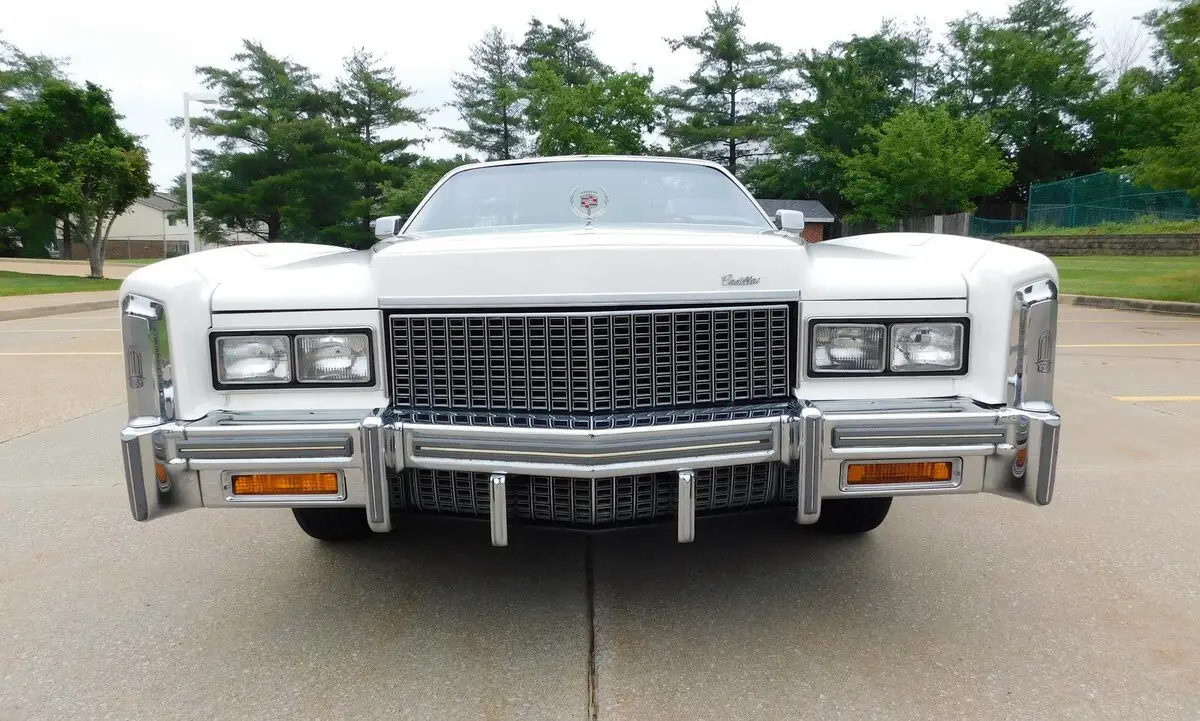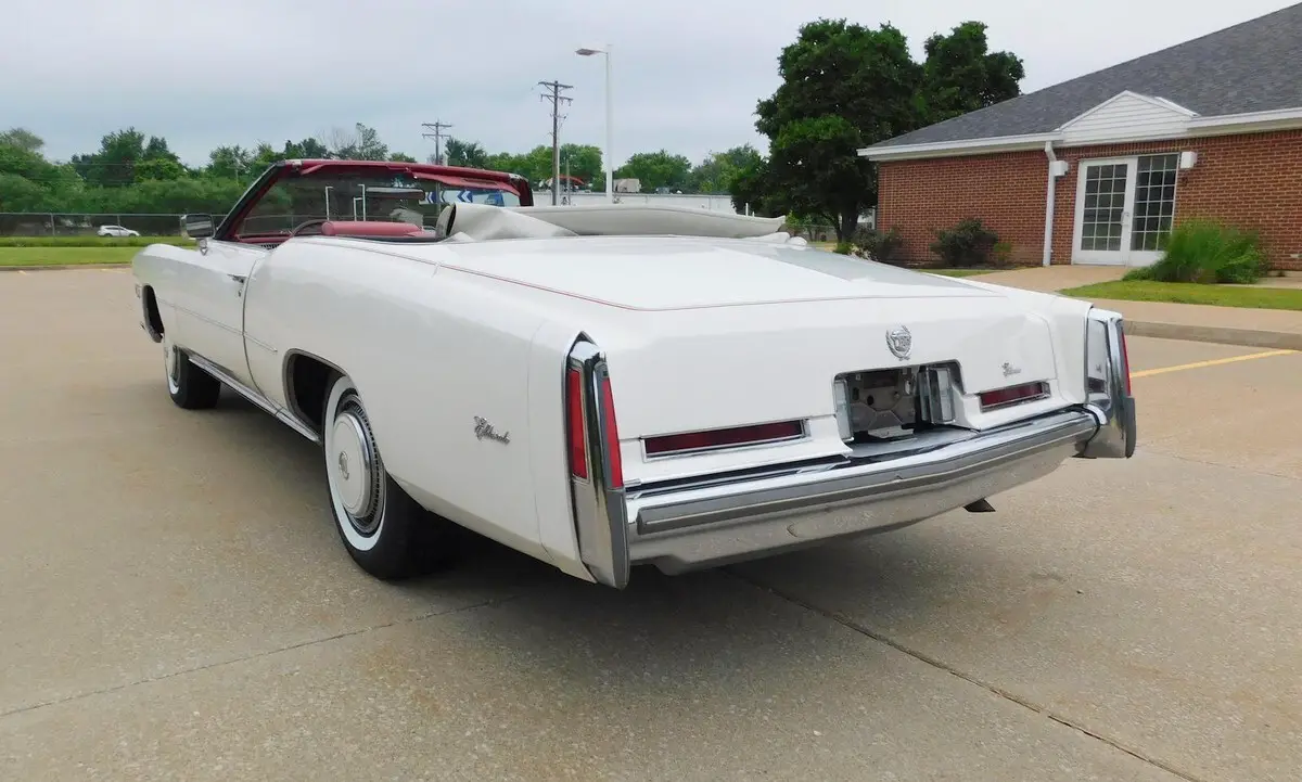 This 1976 Cadillac Eldorado Convertible is a 17,865 miles, unrestored, all original example! This car features the original factory Cotillion White paint and Dark Firethorn red interior !This 1976 Cadillac Eldorado Convertible was among the last of its kind to motor out of Detroit, it stands as an enduring example of luxury, and it was heavily promoted by General Motors as “The Last American Convertible.” The 500 Cadillac big-block V-8 engine is mated to a Turbo Hydra-Matic 3-speed automatic transmission that works well with power steering and brakes for effortless motoring nationwide or around town. Cotillion White paint complements the long sweeping lines of the Eldorado body, and lowering the white pushbutton power convertible top reveals a Dark Firethorn red interior with leather upholstery and wood-grain insets over a plush carpet. Power-operated windows, locks and an antenna join air conditioning with automatic climate control and signal-seeking AM/FM stereo for convenience and entertainment. The Eldorado waits for its next driver to adjust the tilt steering wheel and set the cruise control for maximum luxury per hour.Call 314-346-6039 to purchase or with any questions.314-346-6039