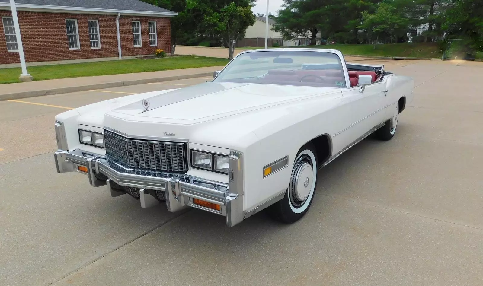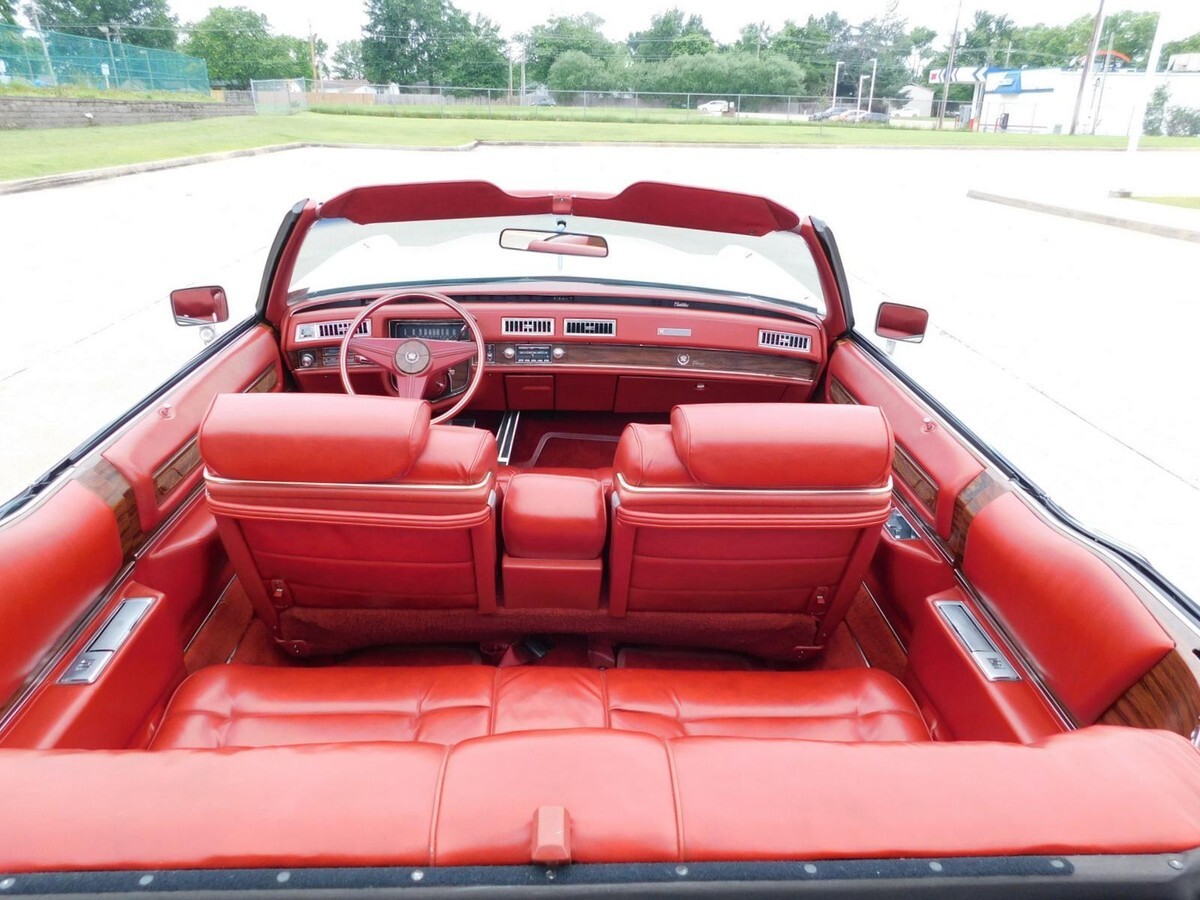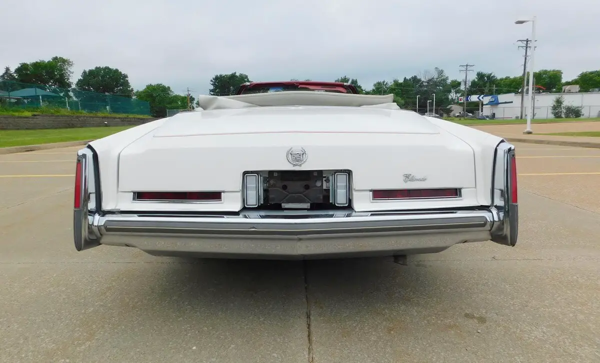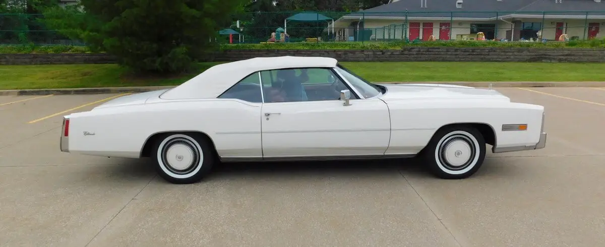 This 1976 Cadillac Eldorado Convertible is a 17,865 miles, unrestored, all original example! This car features the original factory Cotillion White paint and Dark Firethorn red interior !This 1976 Cadillac Eldorado Convertible was among the last of its kind to motor out of Detroit, it stands as an enduring example of luxury, and it was heavily promoted by General Motors as “The Last American Convertible.” The 500 Cadillac big-block V-8 engine is mated to a Turbo Hydra-Matic 3-speed automatic transmission that works well with power steering and brakes for effortless motoring nationwide or around town. Cotillion White paint complements the long sweeping lines of the Eldorado body, and lowering the white pushbutton power convertible top reveals a Dark Firethorn red interior with leather upholstery and wood-grain insets over a plush carpet. Power-operated windows, locks and an antenna join air conditioning with automatic climate control and signal-seeking AM/FM stereo for convenience and entertainment. The Eldorado waits for its next driver to adjust the tilt steering wheel and set the cruise control for maximum luxury per hour.Call 314-346-6039 to purchase or with any questions.314-346-6039