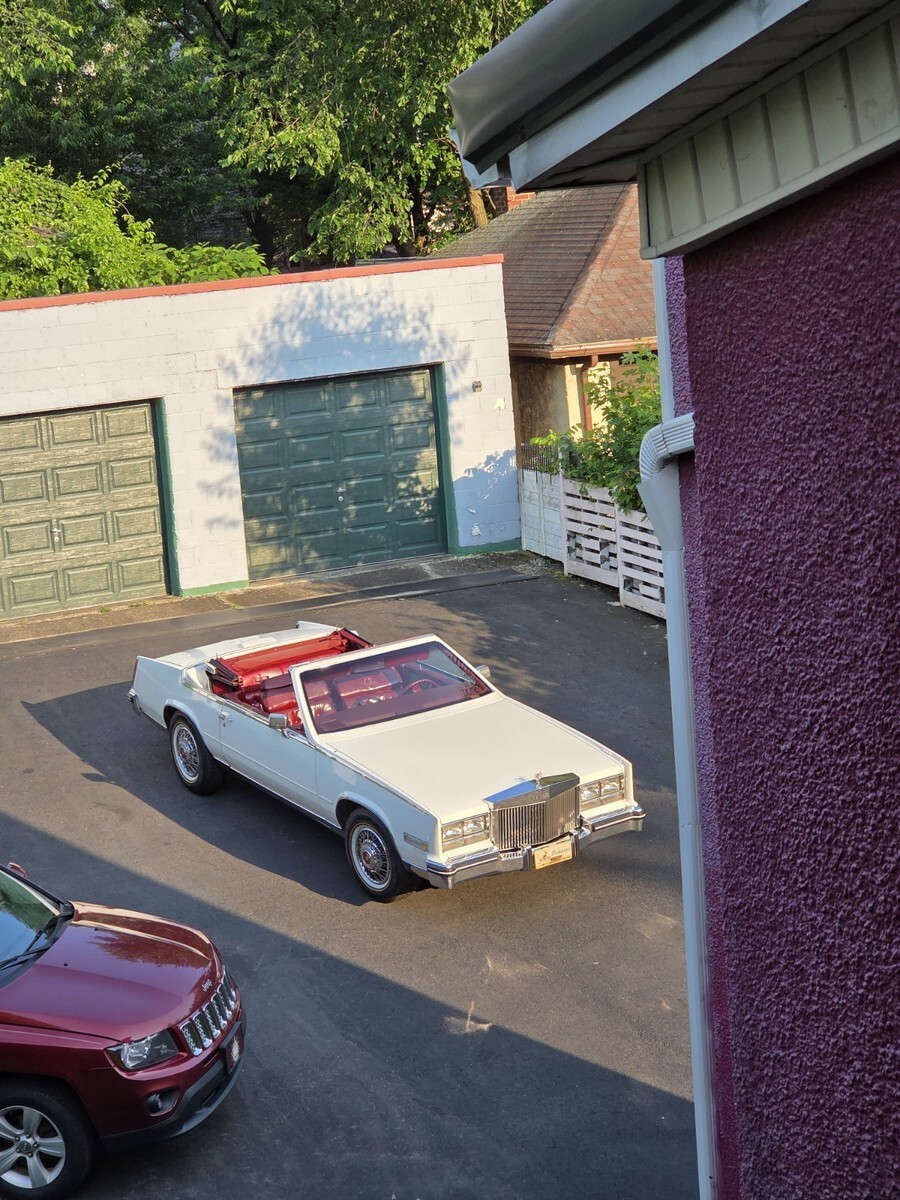 1984 Cadillac Eldorado Biarritz Convertible White with red interior, new Vogue tires 235 75 15, hood cap, rolls royce grill,mud flaps, runs great, 118,000 miles clean interior, nice dash, clean trunk, white top a little torn, great cruiser
