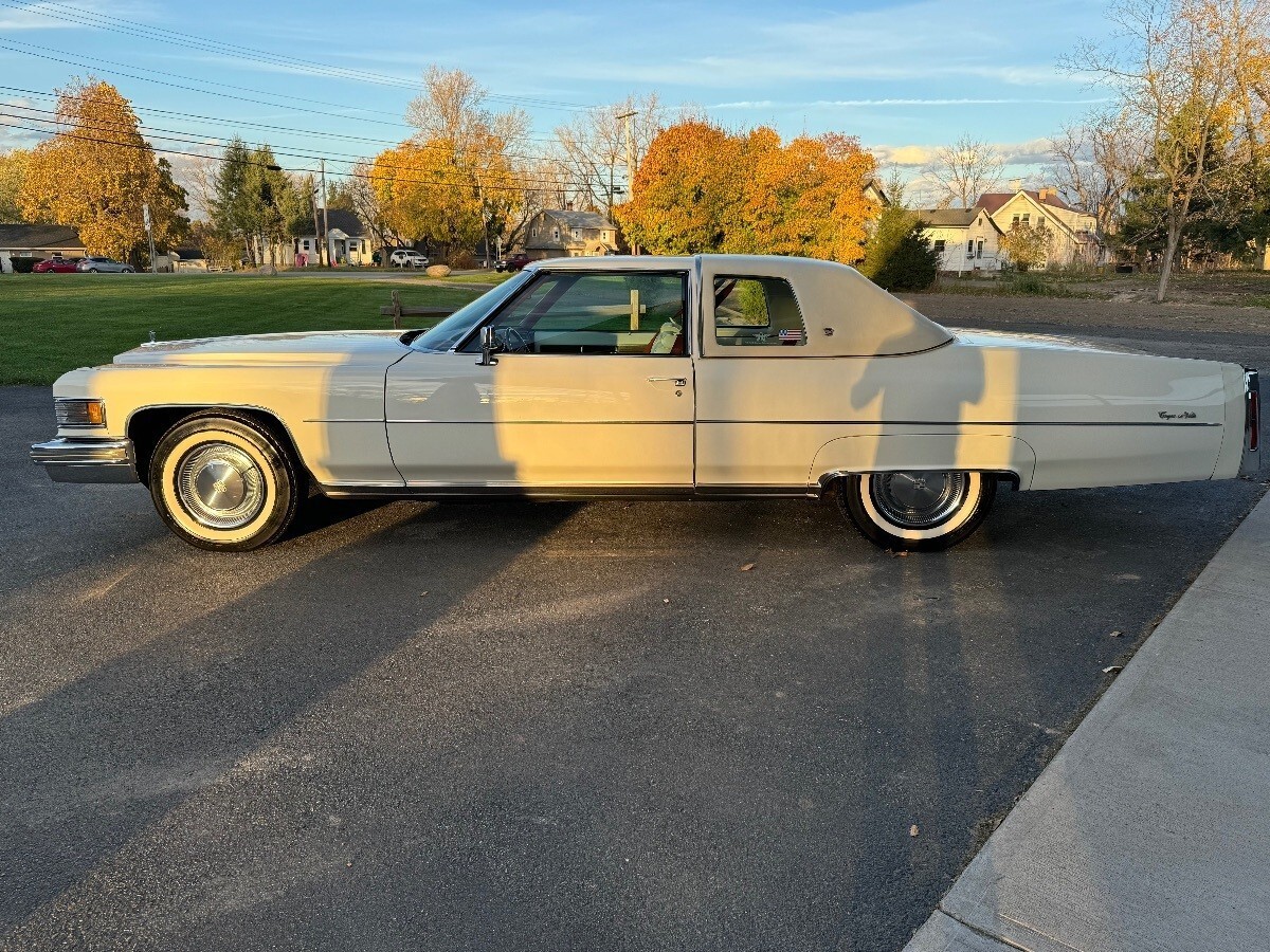 The 1976 Cadillac DeVille is a classic coupe with a white interior and exterior. This vehicle has a mileage of 44877 and comes with 5 seats for passengers. With only 1 previous owner, this Cadillac DeVille is a reliable choice for those looking for a vintage car with a clean vehicle title. The automatic transmission and gasoline fuel type make it a smooth and efficient ride, perfect for those who appreciate the luxury and style of classic cars.See photos for everything original owner. Brochures, bill of sale and rust proof certificate.As a dealer we can assisting buyer with arranging transportation.Feel free to contact our dealship with questions - 585-349-2440 - Ask for Andrew