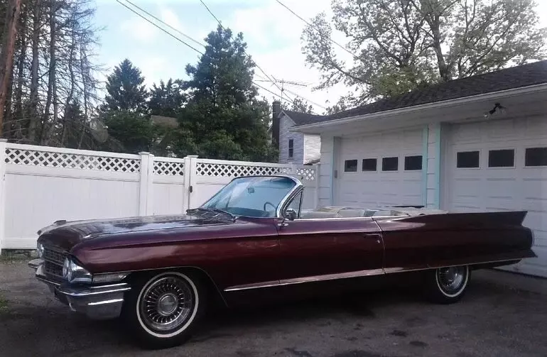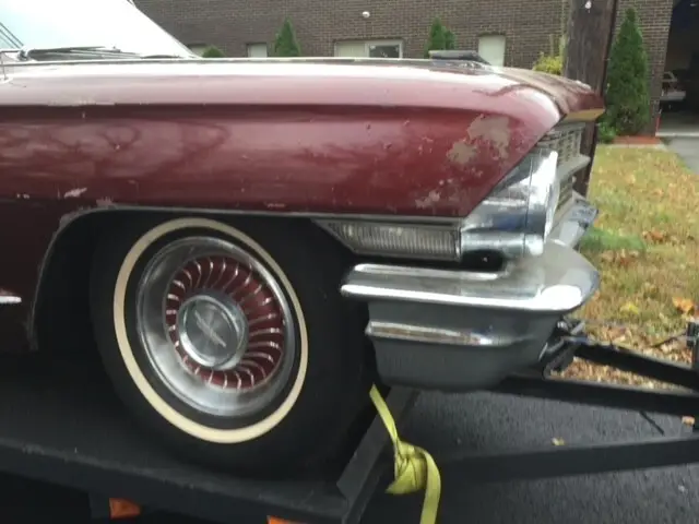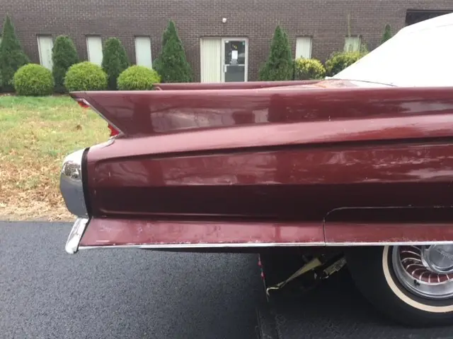 1962 Cadillac Series 62 Convertible for sale. Identical car to the one used in the movie “My Cousin Vinny” Maroon color, white interior and white top. When I rescued the car in 2018 it had a seized engine and no top. Most of the restorative work noted below was done between 2018 and 2022 and it runs / starts very well:
