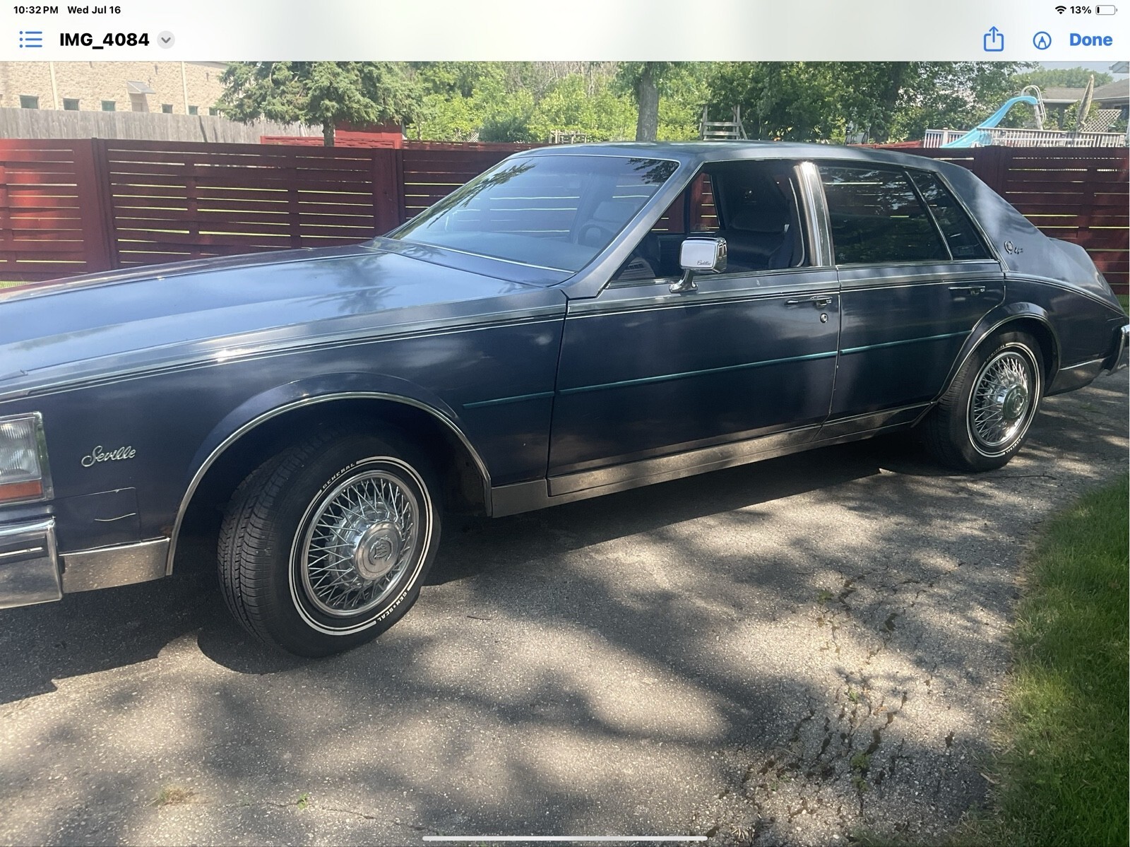 This 1984 Cadillac Seville Elegante is a classic car that is in great condition, with only 94,185 miles on the odometer. Original blue color