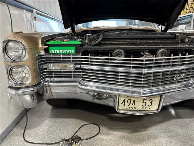 Highlights of This Classic Luxury Cruiser: -Striking Gold Exterior – A statement of sophistication and prestige. -429 cu in (7.0 L) OHV V8 Engine – Smooth, powerful performance from Cadillac’s golden era. -3-Speed TH-400 Automatic Transmission – Effortless shifting for a relaxed driving experience. -FR Layout / Rear-Wheel Drive (RWD) – Traditional Cadillac balance and power delivery. -129.5-Inch Wheelbase – Signature long-body design delivering an exceptionally smooth ride. -Six-Window Hardtop Design – A graceful silhouette with panoramic visibility. -De Ville Scripts – Elegant, Tiffany-like badging above the chrome side molding, unique to this model year. -Refined Ride & Comfort Innovations: Variable Ratio Steering – Easy maneuvering with Cadillac’s signature smoothness. -Improved Perimeter Frame Engineering – Enhances stability, ride comfort, and road isolation. -Patented Quiet Exhaust System – Reduces cabin noise, heightening the luxurious feel. -New Piston & Oil Ring Designs – Optimized for longevity and engine efficiency. Interior Luxury Features: Headrests – For superior comfort on long drives. -Reclining Seats – Personalized positioning for driver and passenger. -AM/FM Stereo System – Classic entertainment with vintage style and Cadillac refinement. This 1966 Cadillac De Ville Gold is more than a car—it's a symbol of status, comfort, and timeless American luxury. A perfect blend of vintage craftsmanship and bold design, it’s ideal for collectors or those seeking a standout classic for weekend cruises.