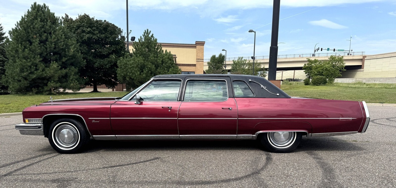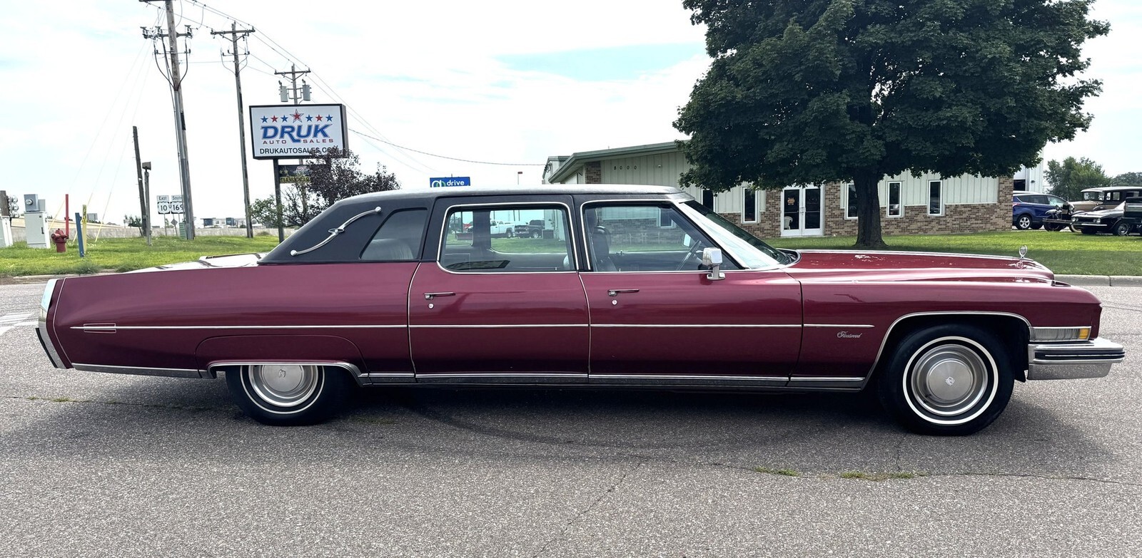 1973 Cadillac Fleetwood Limo. This is a cool car that is powered with a 472 V8 engine and automatic transmission. Clean interior that is original. The front power windows work, blower motor works, wipers work, headlamps work. The antenna works, but the radio is not working. AC is not kicking on. Rear power windows are not working. The power seat works. Fun car to cruise in! Clean title. Make this unbeatable deal yours before its gone.