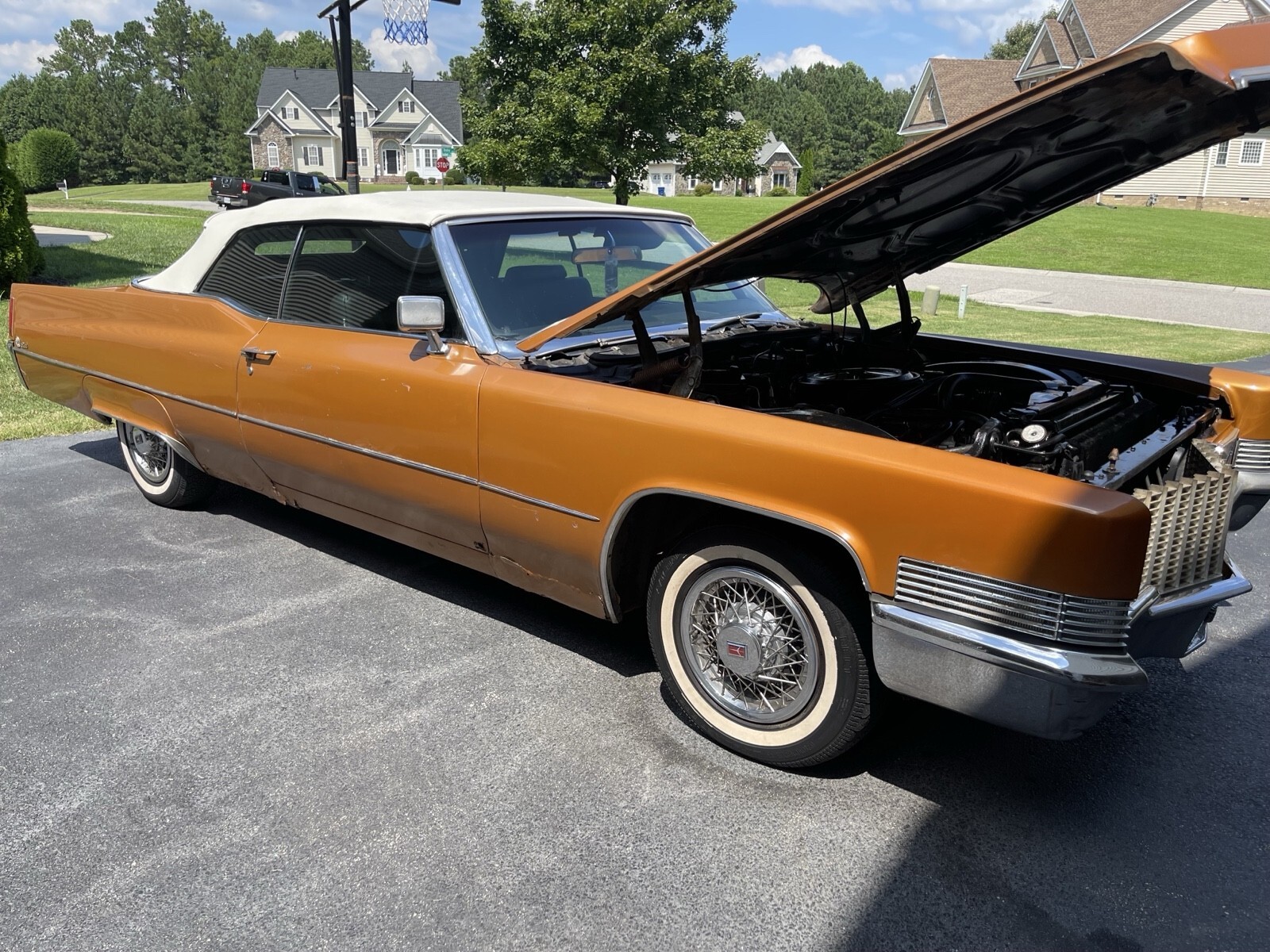 The 1970 Cadillac DeVille is a stylish and classic collector car featuring a black interior and a vibrant orange exterior. This luxury convertible has a spacious interior with 6 seats, making it perfect for cruising in style. With its automatic transmission, 8-cylinder engine, and rear-wheel drive, this Cadillac offers smooth and powerful performance on the road. Its low mileage of 122,000 and clean vehicle title add to its appeal for collectors looking for a timeless piece of automotive history.