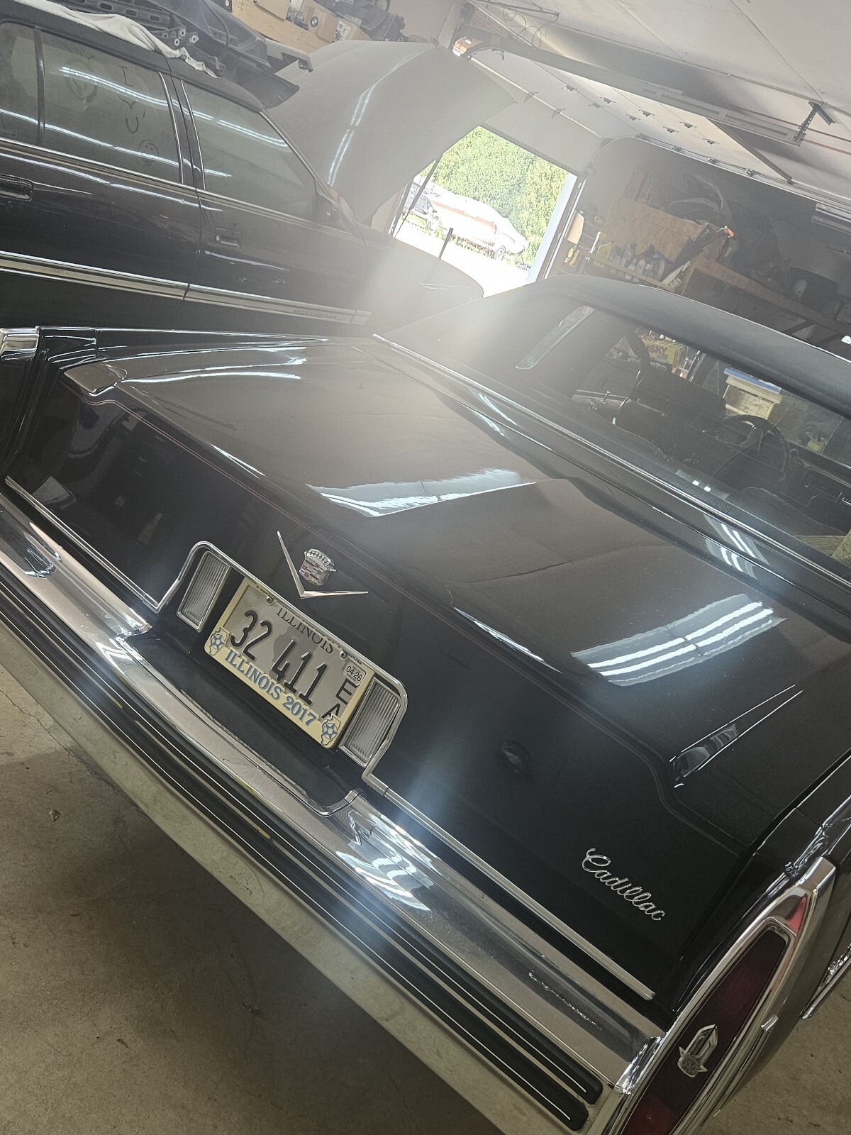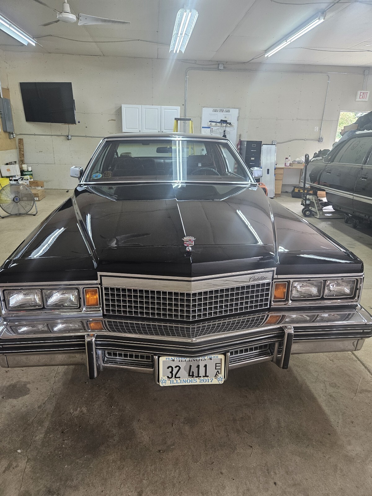 1979 Cadillac Coupe Deville D elegance . 8 cylinder, 34685 miles, Black withBurgundy interior. A/C works converted to 134A. Working 8 track. Never driven in winter. 5 year old paint job. Hand painted pinstripe. Original landau top. Immaculately kept in heated storage. Family owned since original purchase.