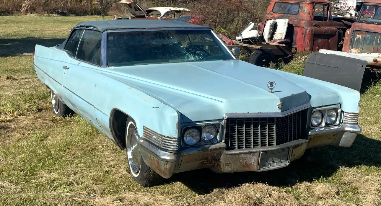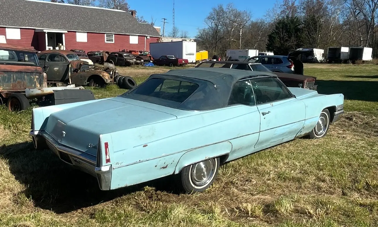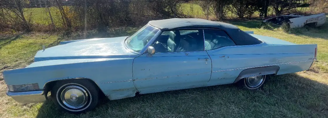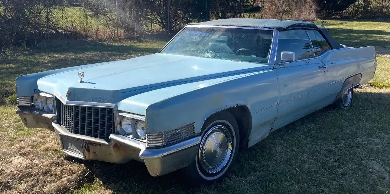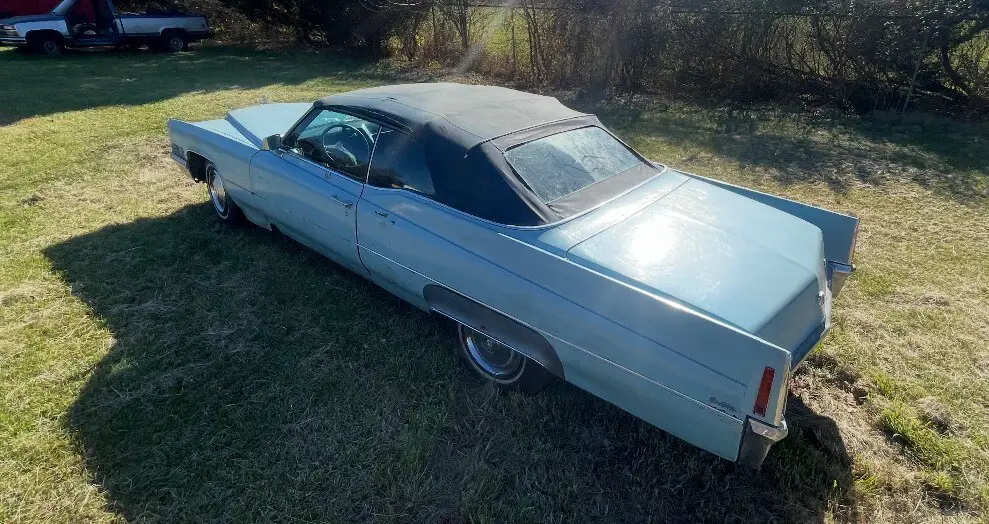 This 1970 Cadillac convertible has recently been retrieved from long-term storage, where it remained in a house basement for 15 years or more The vehicle is currently undergoing a thorough cleaning and assessment to ensure it is complete. The chassis is nice.