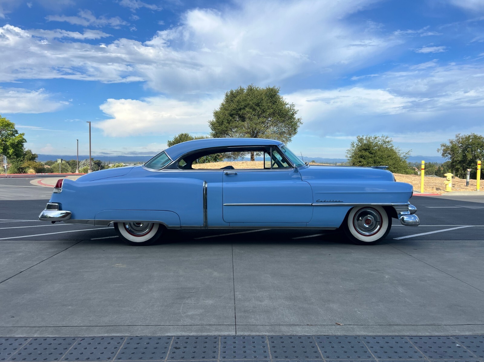 This Cadillac was manufactured in Detroit at the famous Fleetwood plant, per her tag. The exterior of Blue Goose was repainted in the original Olympic Blue about a decade ago. Only the body was painted, under the hood, inside the trunk, and the door jambs; she still wears her faded original paint. The interior recently saw a thorough restoration, faithful to the original patterns; everything is practically new. The all-original drivetrain is powered by an overhead-valve 331-cid V-8 and a 4-speed HydraMatic transmission. That same year, Rolls-Royce acquired a license to produce this transmission through 1979, talk about “Standard of the World!” She has always been well-maintained, running, driving, and stopping as she should, with power steering, the handling of this nearly 5,000 lbs. beast of good old Detroit steel. Headlights and turn signals are fully functional, too. An upgrade of the electrical system from 6 to 12 volts was done, with the addition of push-button start, as well as conversions of the generator to an alternator, and vacuum wiper motor to electric.
