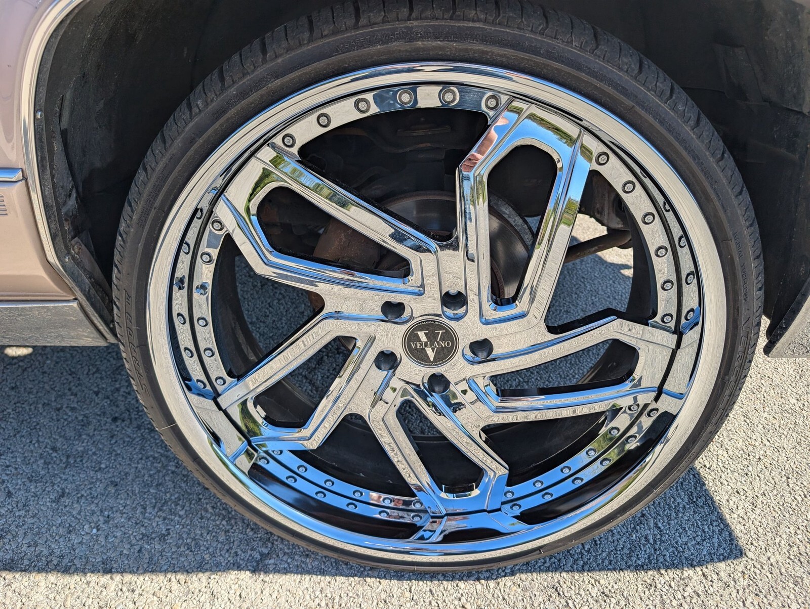 The 24" chrome rims sparkle like diamonds and the champagne paint sparkles in the sun. The tailpipe thump and the subwoofer rumbles. This Caddy is classy, coo, and ready to cruise!