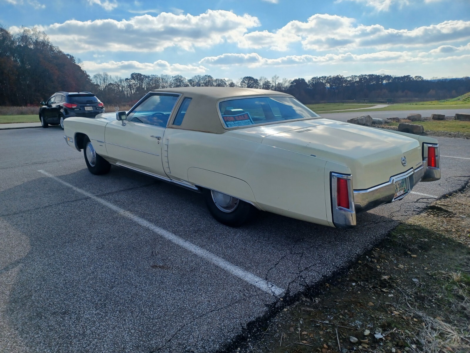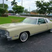 This Casablanca yellow Eldorado stayed with the original owner until July 2025. It has been garage kept it's entire life. Very original car, no modifications to engine, suspension or interior. 500ci/8.2L Engine runs perfectly and starts up every time very quickly, the brakes work very well for a 4600lb car. I have the owners manual and shop service manual. Radiator has been replaced and the rear brakes serviced. Interior is near perfect. Dash is not cracked, carpet is not worn, the electric bench seat works. The electric windows and locks work. There is one tear on the driver side bench seat. That is the only blemish. The A/C, heat and radio do not work. Exterior is all original, the vinyl top has one small tear pictured. The weather stripping is water proof, doesn't leak when washing the car.
