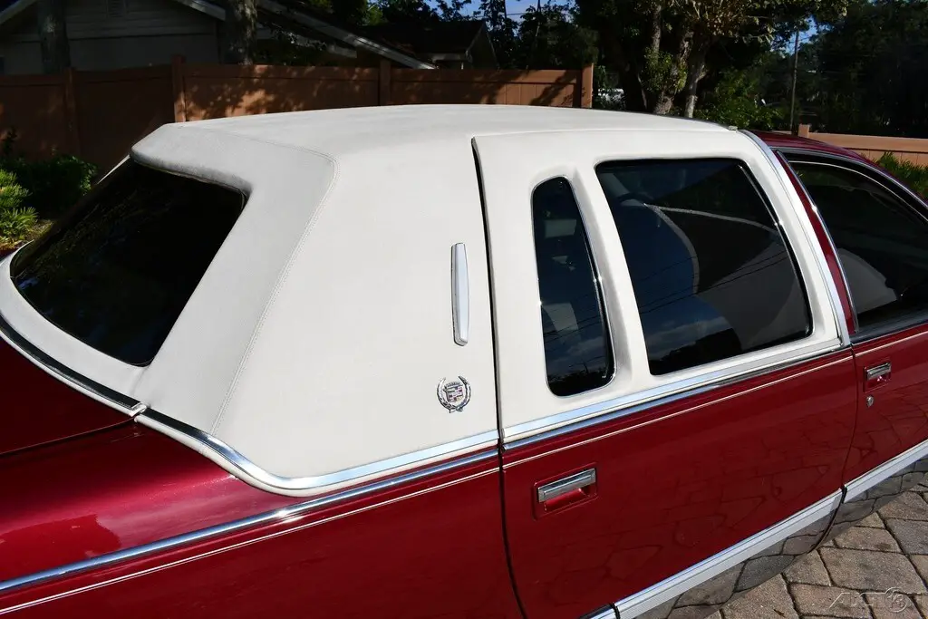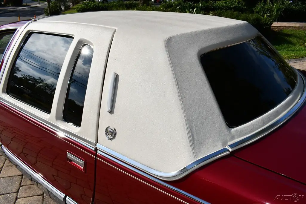 Remarkable 1993 Cadillac Fleetwood Brougham 66,503 Miles Verified by Clean Carfax Title will Read Exempt Due to Age 2 Owners 5.7L V8 Engine Automatic Transmission Maroon Exterior White Landau Top Neutral Leather Interior Air Conditioning Power