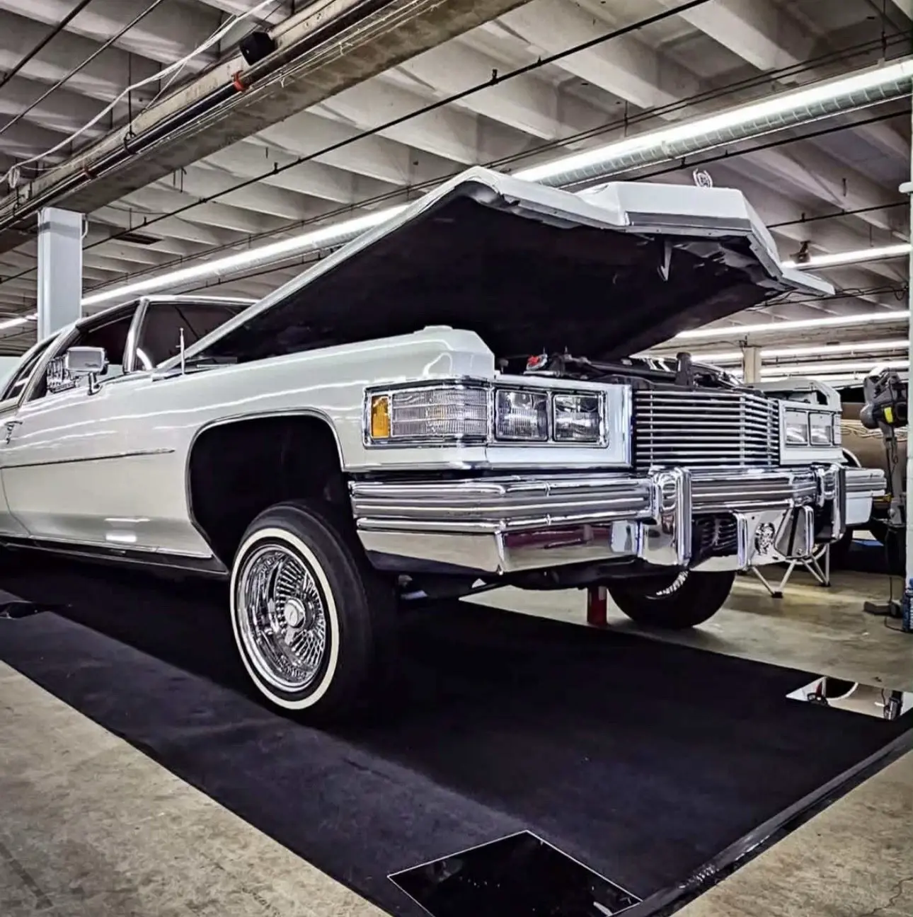 Selling my 1976 Cadillac Coupe de Ville. 500 V8 big block with 44k original miles. Super clean engine bay. Garage kept most of its life. Runs perfect. Everything works as it should. Original paint white paint that is in super nice condition for its age. 6 battery 2 pump lay and play hydraulic set up is only a year old and works perfect. Has hopper style coils so very springy when you hit the switches. No leaks at all. Just added a system recently.
