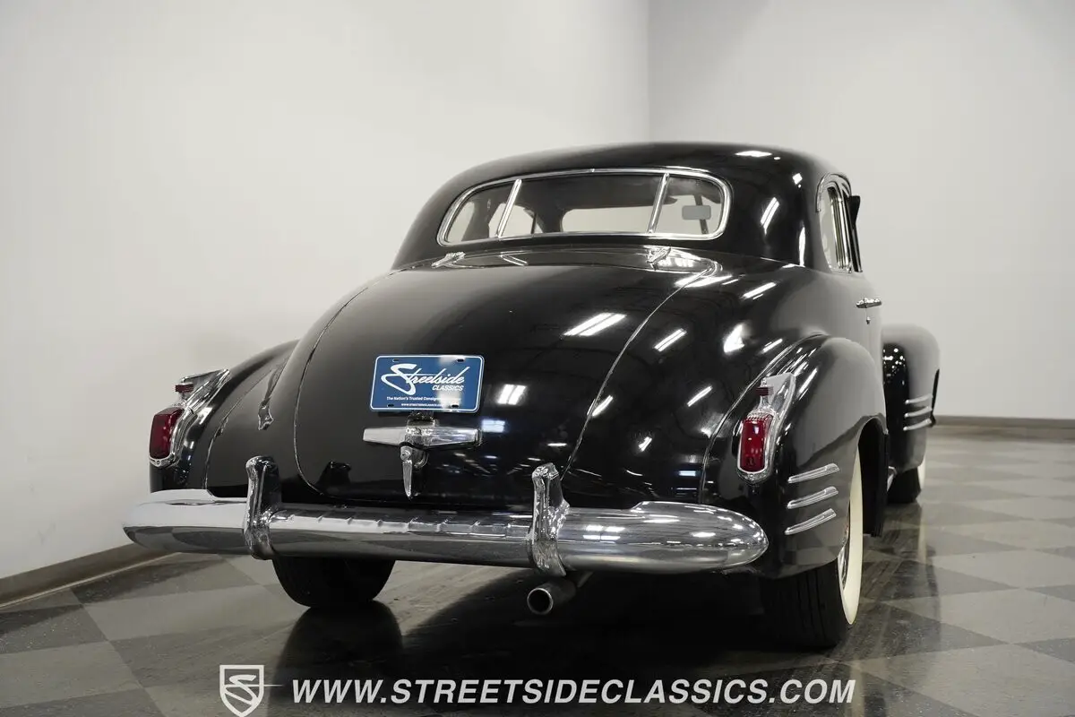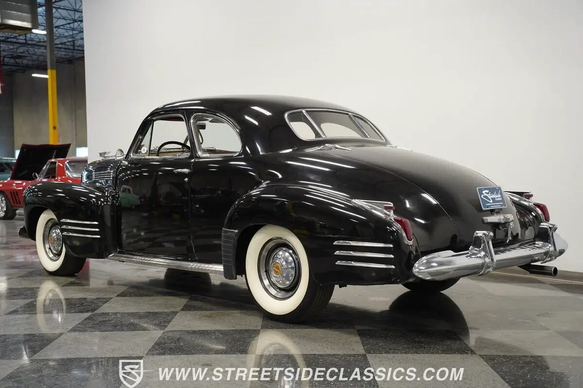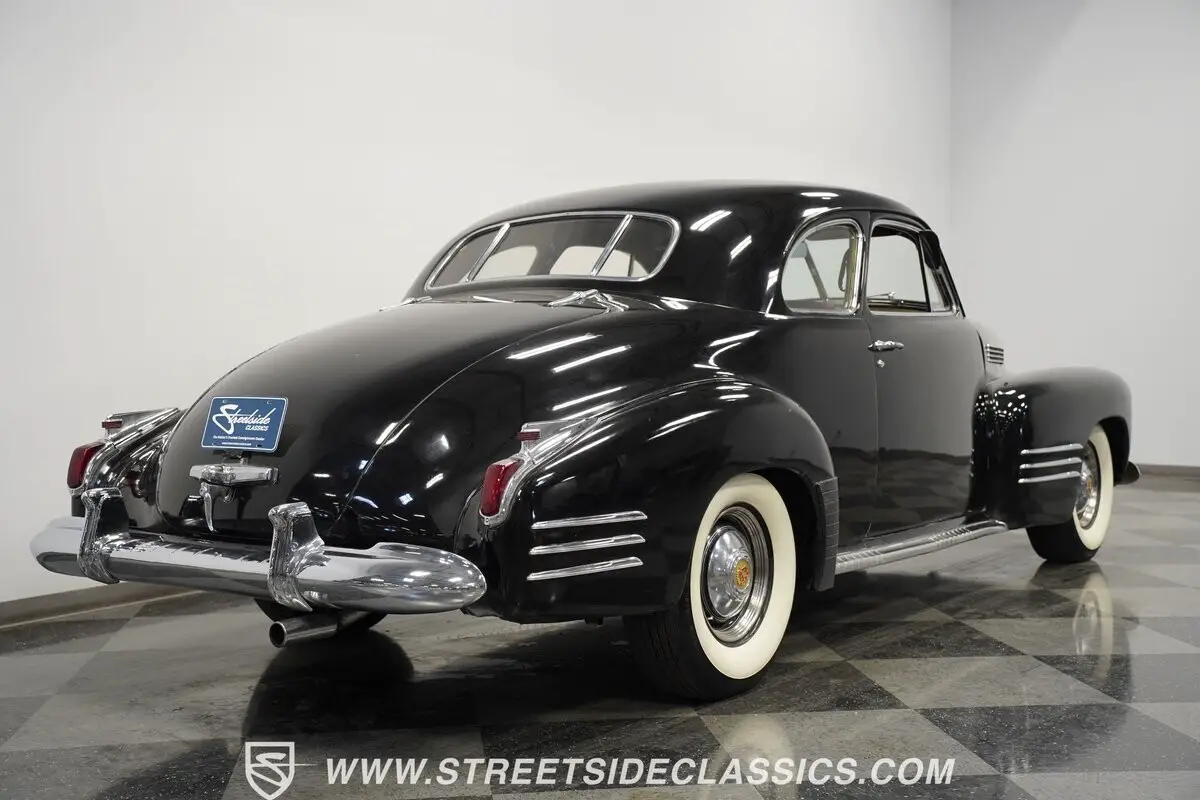 Vintage elegance defines this 1941 Cadillac Series 62 Coupe, a masterful display of pre-war American luxury draped in black paint. Bold chrome adorns the substantial front grille and bumpers, displaying the luxury expected of GM's flagship brand. Every angle of this coupe speaks to Detroit's golden age craftsmanship, while the classic body lines flow elegantly from front to rear. The dignified profile sits on 15" steel wheels with factory-style center caps wrapped in L78-15 Coker Classic tires. Original glass remains intact and the aged yet complete window trim maintains the authentic character that makes this Cadillac immediately recognizable.