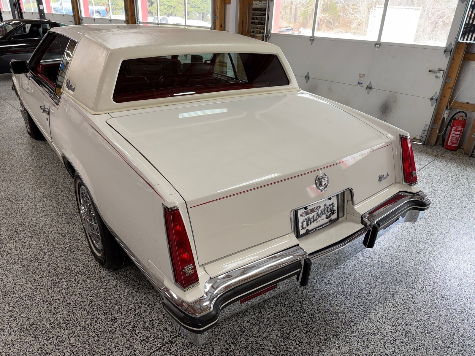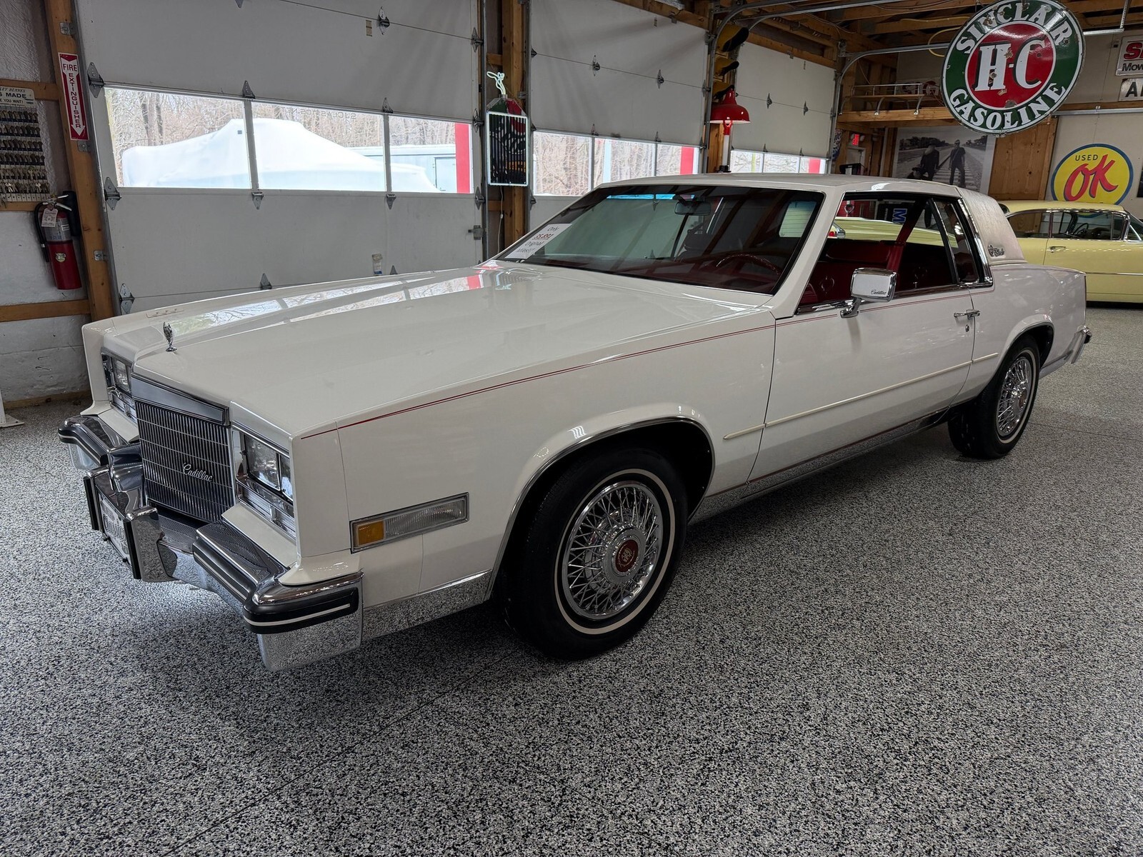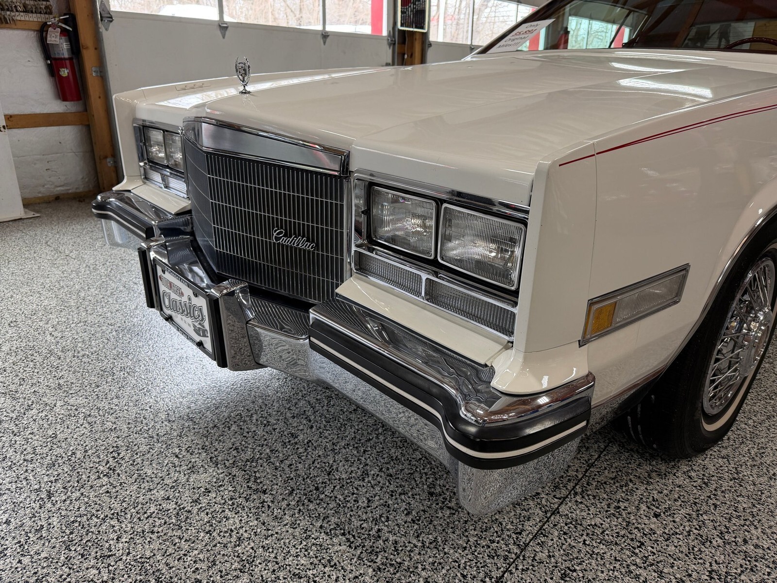 This 1985 Cadillac Eldorado Coupe is a beautifully preserved example of Cadillac's signature personal luxury era, showing just 35,891 original miles and presenting exactly as a well cared for survivor should. Finished in elegant Cotillion White with a matching white cabriolet-style partial vinyl roof, the car delivers the unmistakable upscale presence that defined mid-1980s Cadillac styling. The exterior is complemented by 15-inch wire-spoke wheel covers wrapped in white line tires, giving the car the refined, formal appearance buyers expected from Cadillac's flagship coupe.