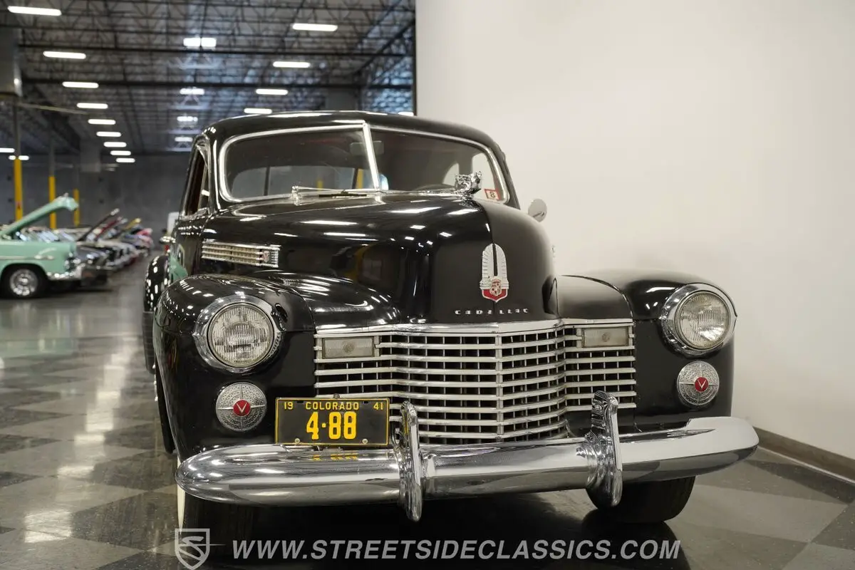 Vintage elegance defines this 1941 Cadillac Series 62 Coupe, a masterful display of pre-war American luxury draped in black paint. Bold chrome adorns the substantial front grille and bumpers, displaying the luxury expected of GM's flagship brand. Every angle of this coupe speaks to Detroit's golden age craftsmanship, while the classic body lines flow elegantly from front to rear. The dignified profile sits on 15" steel wheels with factory-style center caps wrapped in L78-15 Coker Classic tires. Original glass remains intact and the aged yet complete window trim maintains the authentic character that makes this Cadillac immediately recognizable.