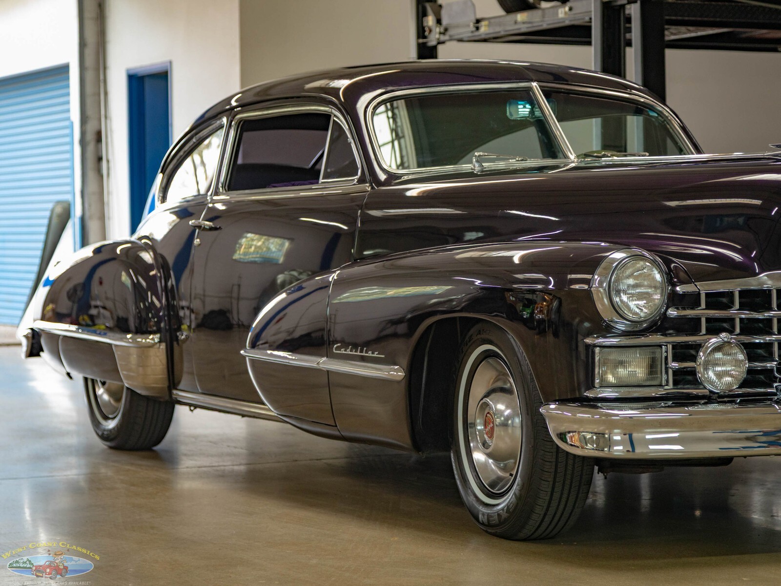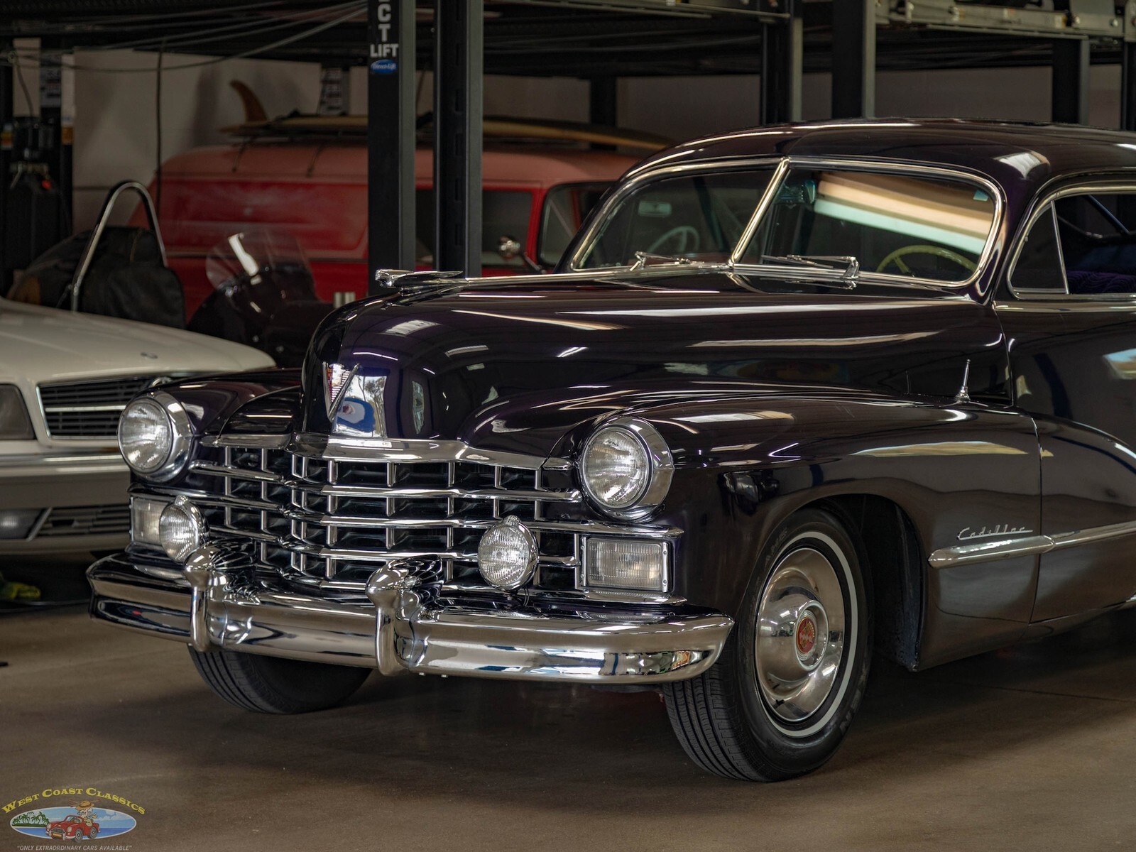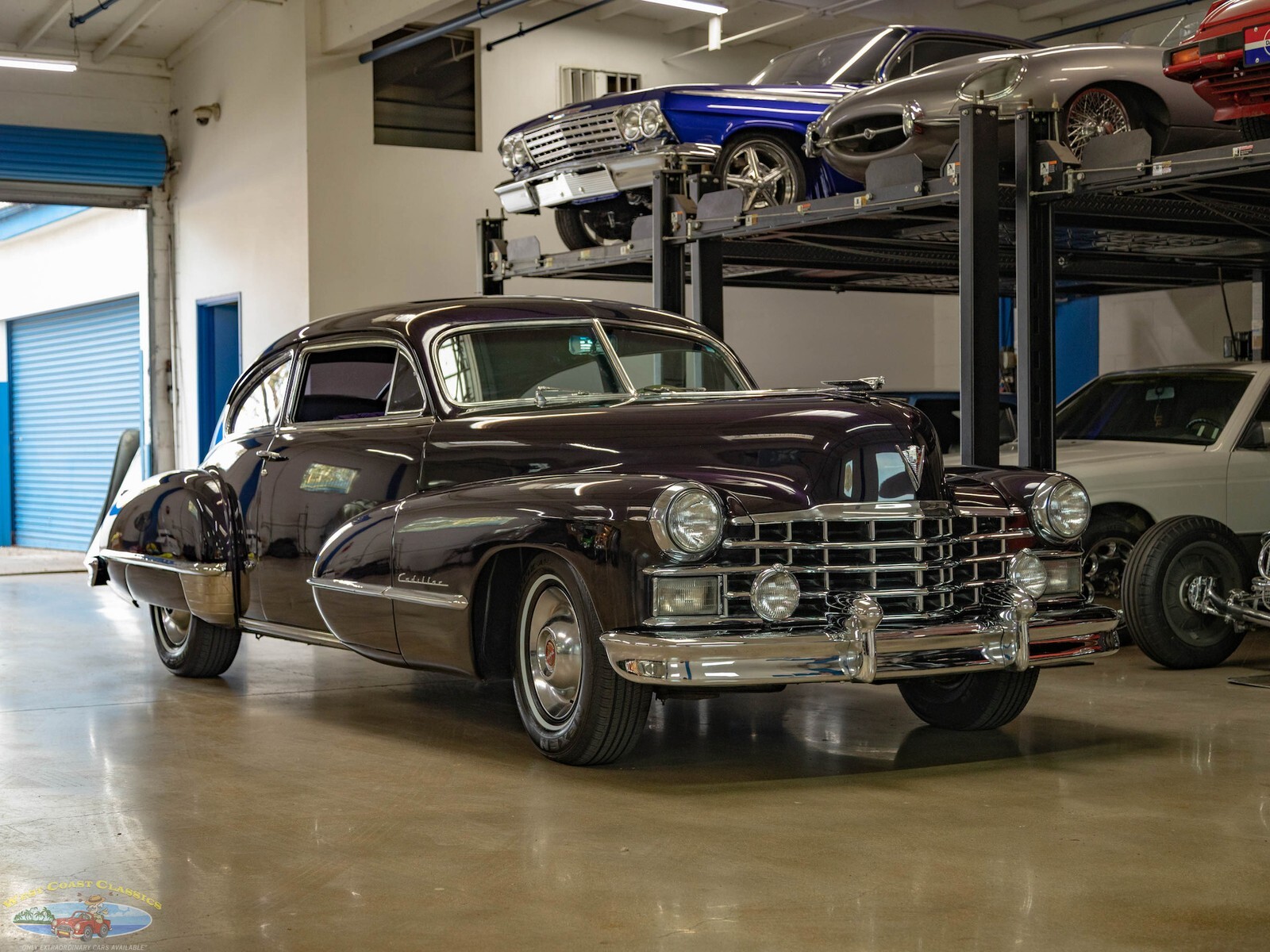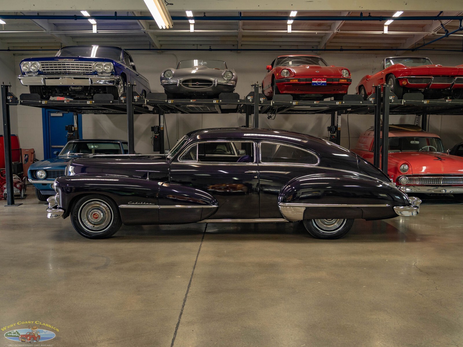 West Coast Classics are proud to present an exceptional and great daily driving and extraordinarily rare and completely rust free and fully restored example with a custom interior of this 1947 Cadillac Series 62 2 Door 6 passenger Club Coupe, otherwise and more commonly known as the 'Fastback Sedanet', which has the aura and look of the classic 'boattail' look about it, with its all original 346CID 2BBL L-head 150HP flathead V8 engine matched to the Hydra-Matic automatic transmission ($186), original radio ($74); heater under seat defroster ($76); full floor carpeting, chrome rear fender gravel guards, rear fender skirts, directional signals, dual downdraft carburetor with automatic choke, 'Super Safe' hydraulic brakes, small hubcaps - 1 of very few remaining examples anywhere of this striking series 62 2 Door Club Coupe's built in 1947.