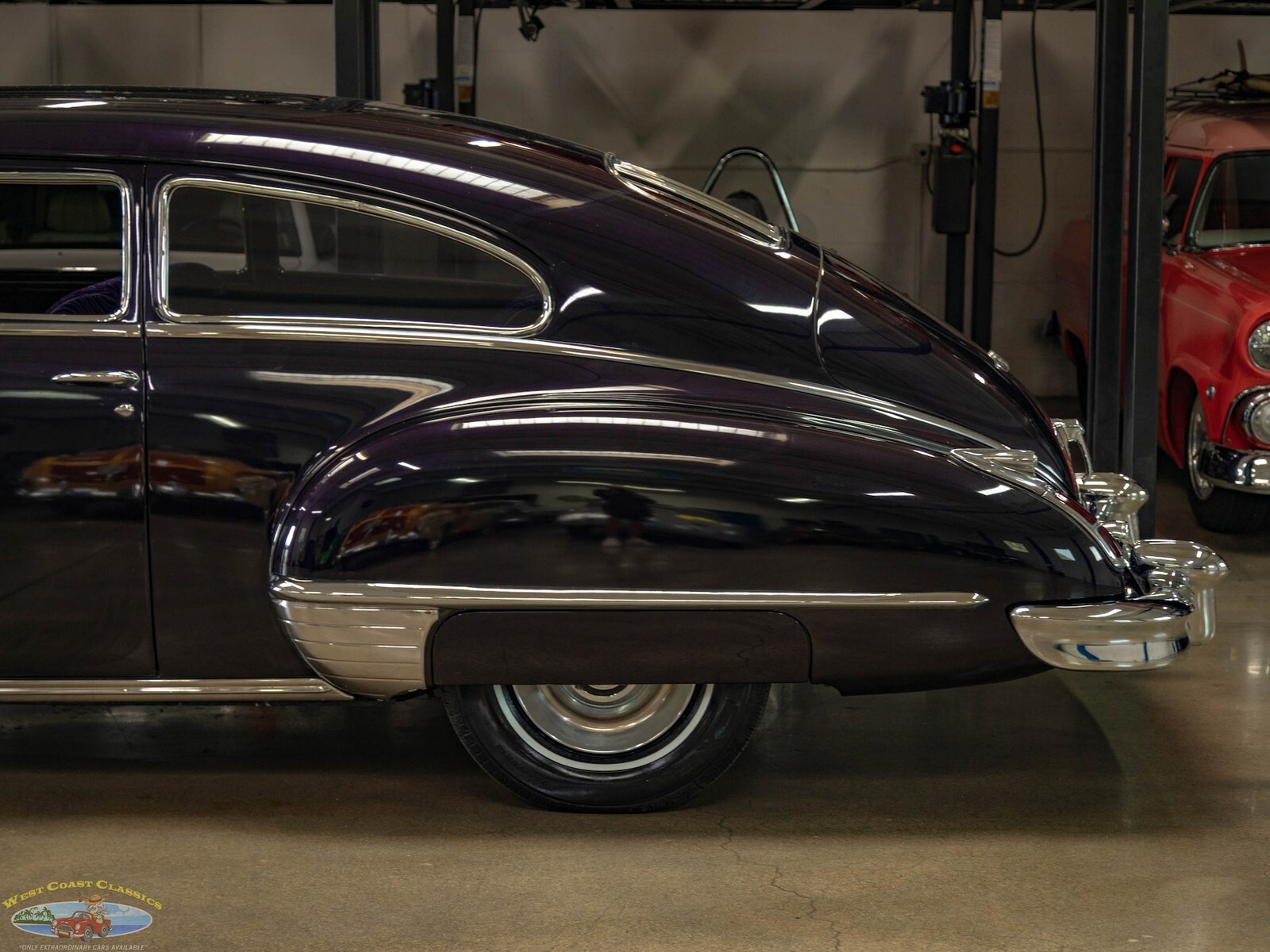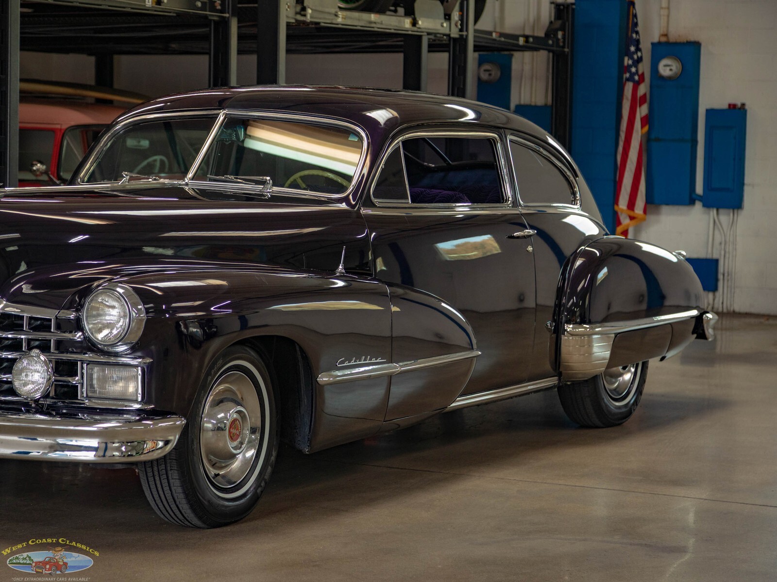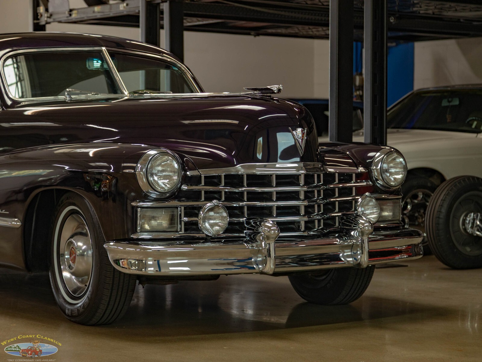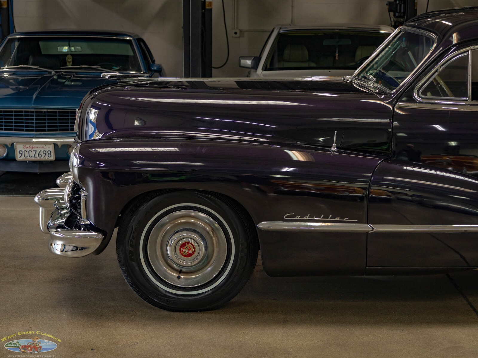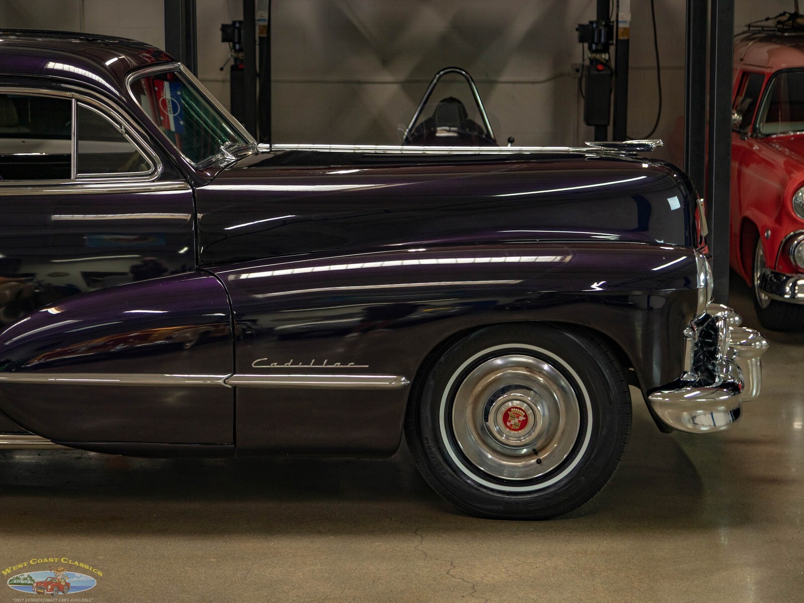 West Coast Classics are proud to present an exceptional and great daily driving and extraordinarily rare and completely rust free and fully restored example with a custom interior of this 1947 Cadillac Series 62 2 Door 6 passenger Club Coupe, otherwise and more commonly known as the 'Fastback Sedanet', which has the aura and look of the classic 'boattail' look about it, with its all original 346CID 2BBL L-head 150HP flathead V8 engine matched to the Hydra-Matic automatic transmission ($186), original radio ($74); heater under seat defroster ($76); full floor carpeting, chrome rear fender gravel guards, rear fender skirts, directional signals, dual downdraft carburetor with automatic choke, 'Super Safe' hydraulic brakes, small hubcaps - 1 of very few remaining examples anywhere of this striking series 62 2 Door Club Coupe's built in 1947.
