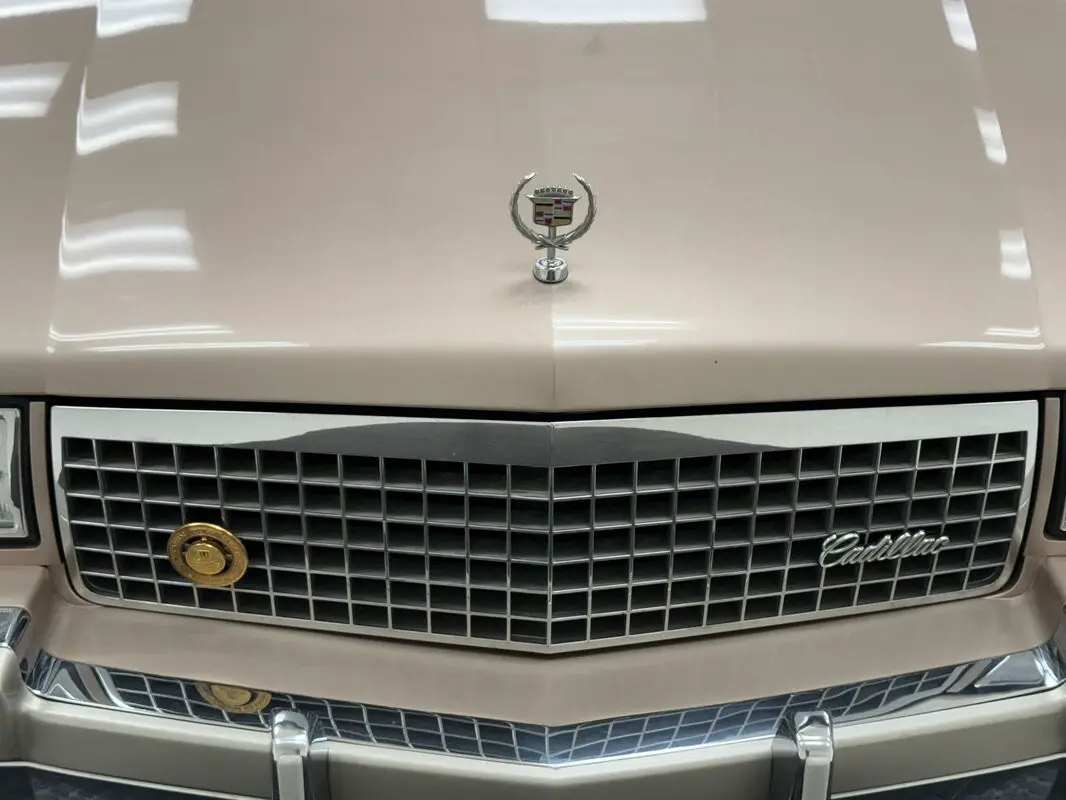 Two stage Antelope Firemist is an extravagant name for beige which is in remarkable condition on this pampered car. The decidedly square car, now 34 years old, harkens back to a time when square cars were becoming round and remnant holdouts were still being produced to appeal to Cadillac devotees who wanted long, soft riding cars with a substantial trunk. The long horizontal