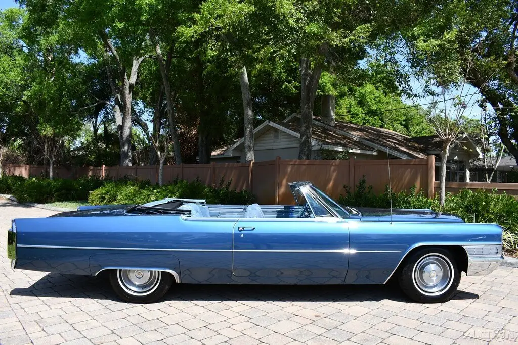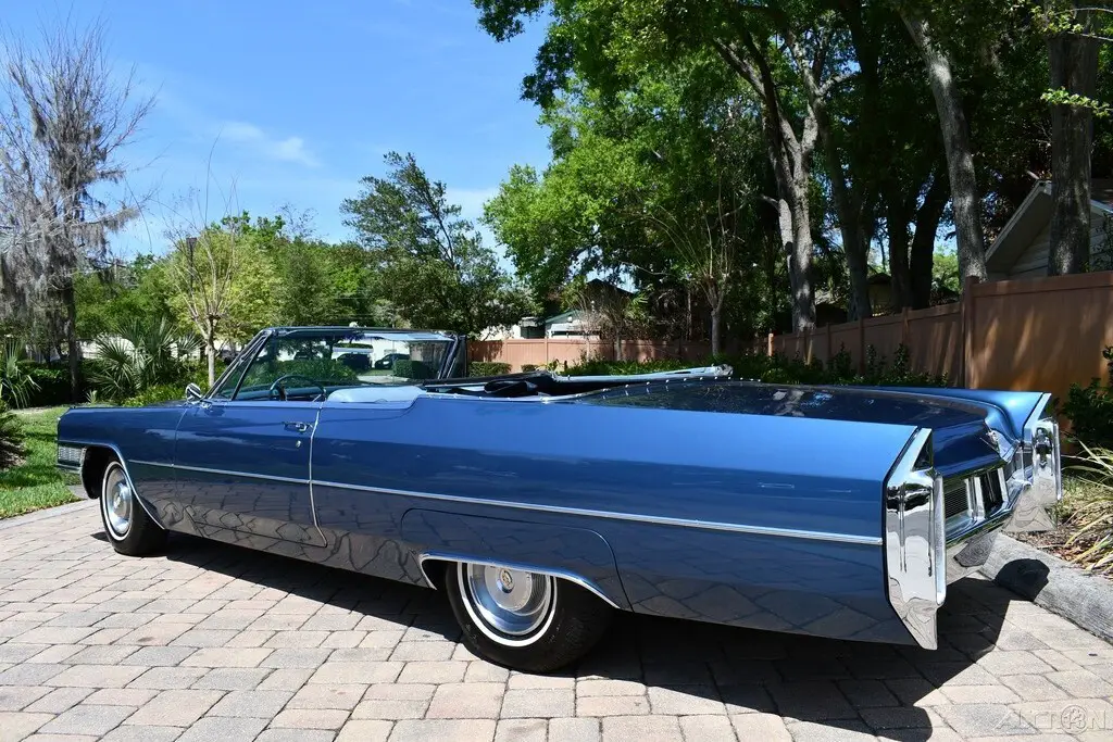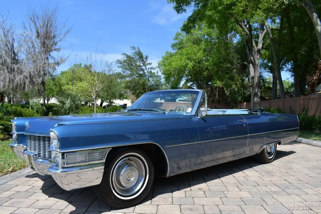 1965 Cadillac Deville Convertible Rare Stunning Color Combination Tahoe Blue Iridescent Exterior Amazing Blue Leather Interior Navy Blue Convertible Top 429ci V8 Engine Automatic Transmission Fully Loaded Amazing Chrome & Bright Work Factory Am/Fm