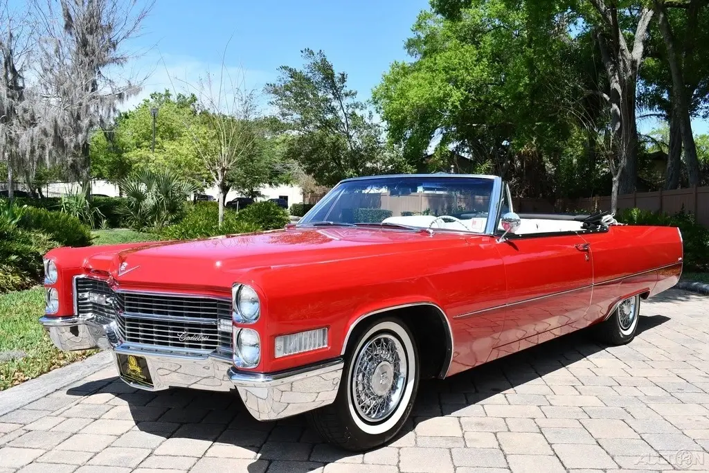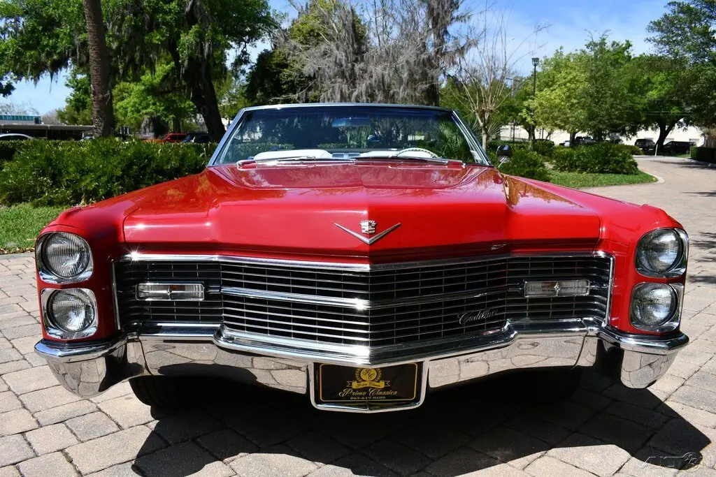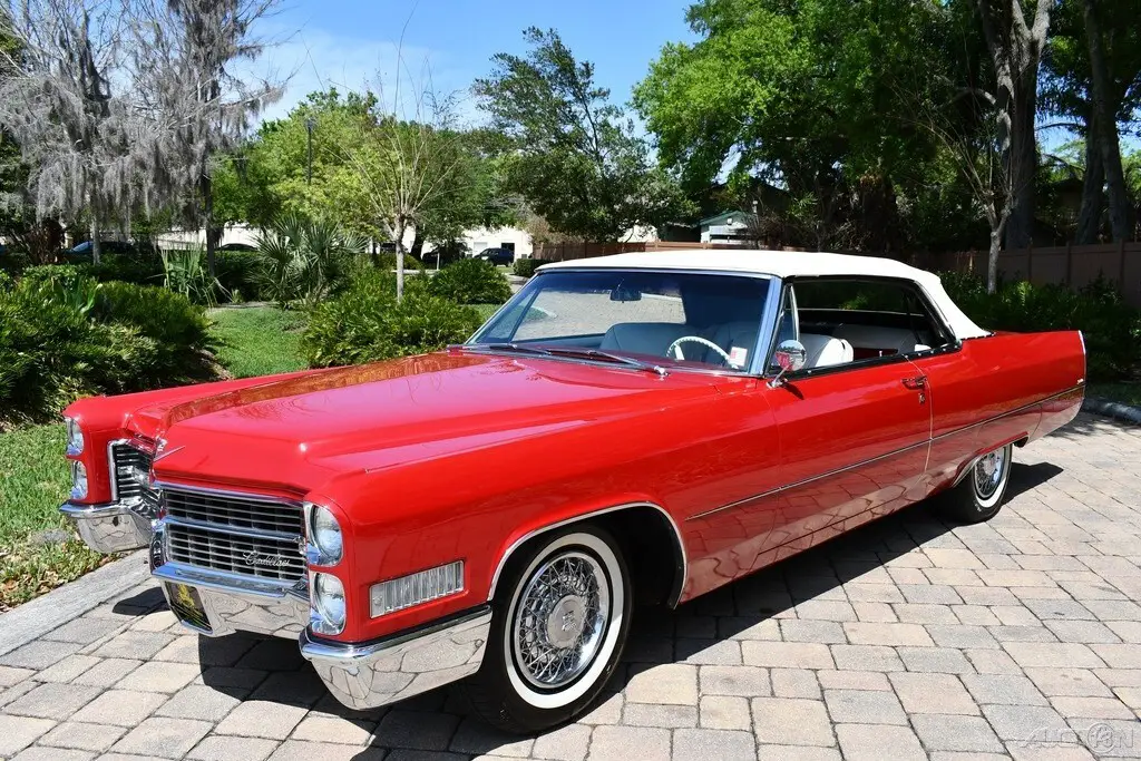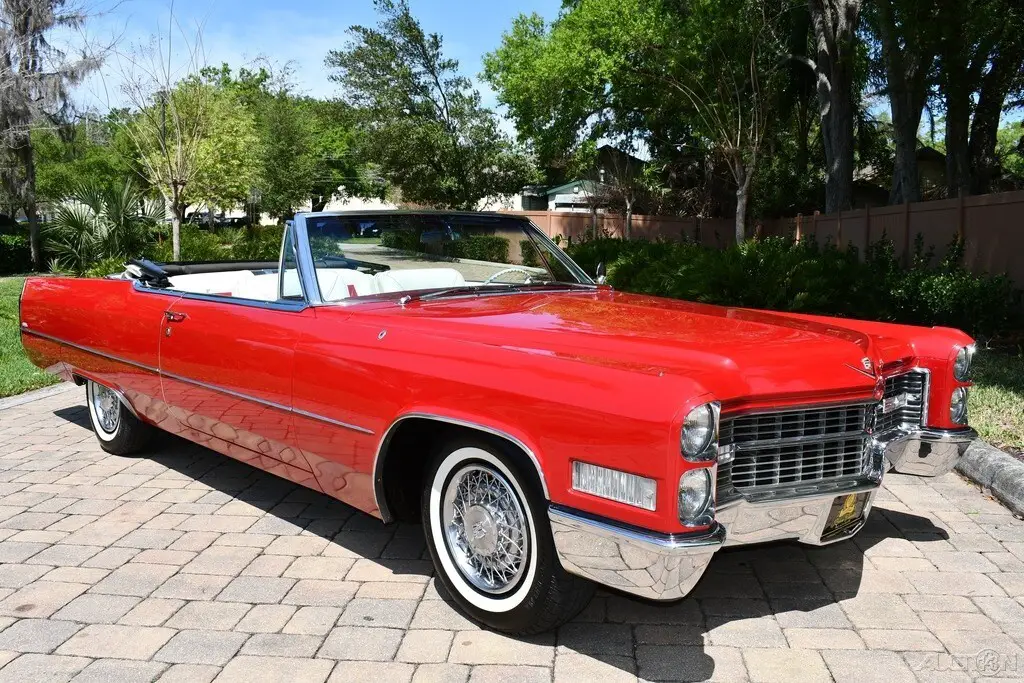 Incredible 1966 Cadillac Deville Convertible 429ci V8 Engine Automatic Transmission Flamenco Red Exterior Red & White Leather Interior WhitePower Convertible Top Exceptional Chrome & Bright Work Factory Air Conditioning Power Steering Power Disc Brakes