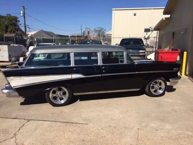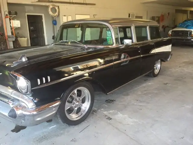 First the only reason you are seeing this sale is I just purchased a 1974 convertible corvette so I am selling my 57. This my 1957 Bel Air wagon four door in great shape it has very little rust see photos and floor boards are all there no rust never change paint is a 8 out of 10 inside is new needs a little trim tightening new carpetwhen I purchased this wagon it was running and driving fine but I want a pro touring setup are a close as I could build one so we got it and remove motor and trans and put in a built 400 small block that is a high nickel block with a mild cam and roller setup and I put in a turbo 350 trans and we put in Danchuk auto parts new motor mounts the move motor forward 3/4" of a inch for HEI system and a transcross memberand new discbrakes and drop spindlesnew A arums new wheels and tires.The bumpers are not bad but could use a re chrome soon.This is been sold were is and as is and no refund and at the end of auction there is a $1,000.00 deposit and it a no refund. Please seephoto of passenger side back door clear coat needs a touch up.