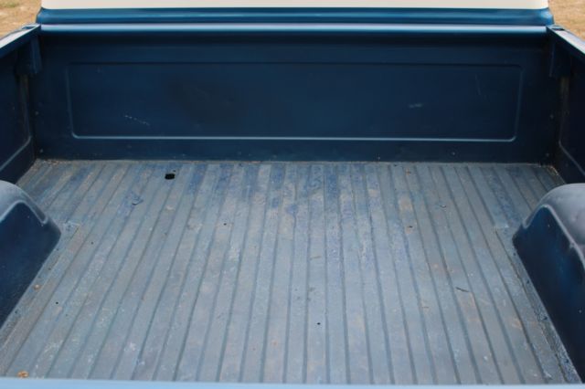 The truck has a factory style interior that is black. The seat and carpet are both in excellent condition. The gauge cluster will need to be replaced or repaired. Radio is present but not working.