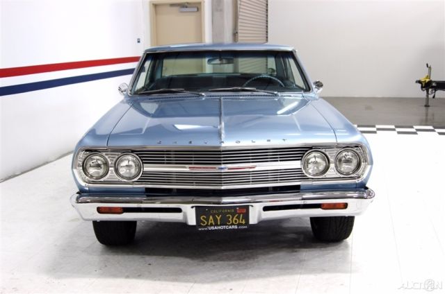 283 CID. Suffix Code- F0706DE(195 HP 2BBL Power glide Automatic). Cast#3849852(57-66 283 CID). Axle Code-CA 0928(1965 Chevelle 3:08). Transmission Code- 3851325(M20 64-65). 4 Speed. Color Code DD(Mist Blue). Trim Code 741(Blue). Chrome Air Cleaner. Edelbrock 4BBL Carburetor. Edelbrock Aluminum Intake. Aluminum Finne Valve Covers. Dual Exhaust with Flowmaster Mufflers. 10 Bolt Rear End. Power Front Disc Brakes. Bucket Seats. Factory Console. Deluxe Gauge Package with Factory Tach. Factory AM Radio. AM/FM/USB Stereo. 18 Boss Wheels. If you are in the market for that special car then come to our showroom in San Ramon, CA. Make your dreams a reality call the USA Hot Cars Team TodayNeed financing assistance? Give us a call - we have excellent rates!! USA Hot Cars is the Premier Classic and Muscle Car Dealer with over 27 years of helping customers from around the world find the car of their dreams.Call us at: USA Hot Cars 925-292-0922, or 1-800-900-0227.Email us at: Sales@myhotcars.com.Like us on FACEBOOK: www.facebook.com/MyHotCarsFollow us on TWITTER: https://twitter.com/MyHotCarsWatch us on YouTube: https://www.youtube.com/channel/UCLDt4Vcyc6tUj5a3O40WySAReview us on YELP: http://www.yelp.com/biz/usa-hot-cars-san-ramonNew Inventory Arriving Every Day at www.myhotcars.com