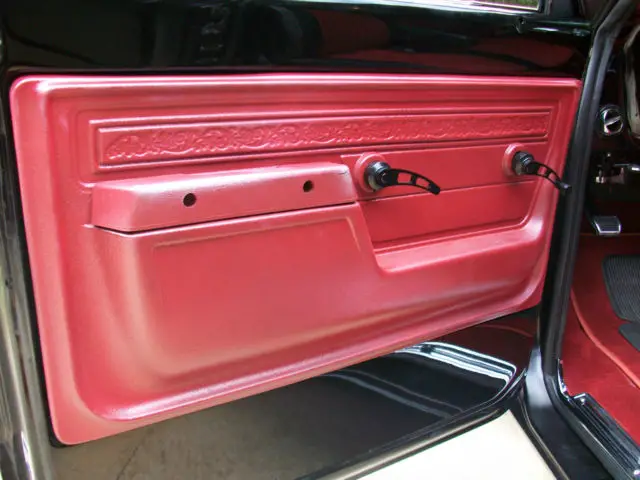 w/ Red/ Black Houndstooth. New 1972 Door Panels. Rebuilt Tilt Column w/ Lecarra Steering Wheel. Dakota Digital VHX Instrument Cluster. Sony AM/FM CD Stereo.