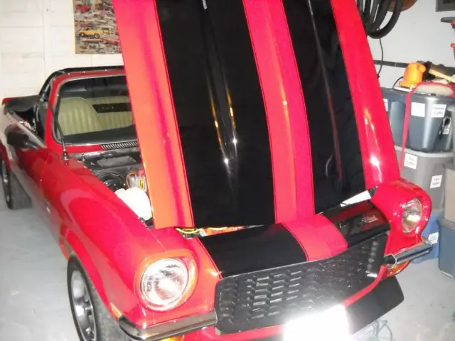 1972 Vega GT Roadster For Sale. This car was originally converted into a roadster in 1992. The frame was reinforced with a welded six-point roll-bar and two square-tube subframe connectors. The fiberglass, cowl-hood, front and rear spoilers were also added at that time, just before it was painted red with black stripes. It has been stored inside a climate-controlled garage ever since. The engine was steel-sleeved, rebuilt, ported, polished and deburred in 2012 and features a midrange/top-end SOHC CROWER racing profile camshaft and a pure WEBER DCEV 32/36 carburetor. Ignition is handled by a later-model HEI unit, ACCEL coil and TAYLOR wires. Exhaust flows freely through a ceramacoated, long-tube header, Magnaflow stainless muffler and dual/slash cut tip that exits just behind the driver's door. The engine is mated to a rare World-Class T-50 Five Speed transmission from a 1979 Buick Skyhawk. The rear differential houses a 3.36 rear gear. The mechanical radiator fan was replaced with an electric one to free up horsepower and reduce drag on the water pump. The upholstery is in great condition, with no rips, tears or fading. The carpet was replaced a few years ago and still looks great. It comes with matching ACC custom floor mats made from the same closed-loop carpet.This little car really turns heads. It is not perfect and has picked up a few door-dings through the years, but it is still very presentable. It's balanced engine sounds like a European exotic and runs very smooth while averaging 24 mpg! The car handles well thanks to its wide 13" Sumitomo Radials, Mullins steering box and fat aftermarket anti-sway bar. The rear sway-bar is an oem GM one.I hate to see the car go, but I had knee surgery a few years ago and a cable-clutch just isn't much fun on that knee! Buyer is responsible for shipping. Oh yes and THERE IS NO TOP! I never needed one, but the buyer could hire an upholstery person to fabricate a custom one if they desired to do so.