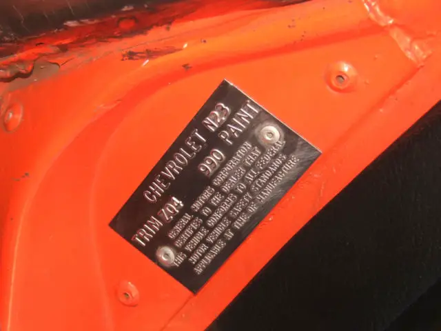 Lots of original paint- with jambs being untouched. Original VIN tag/decal in driver's door is clean and untouched.