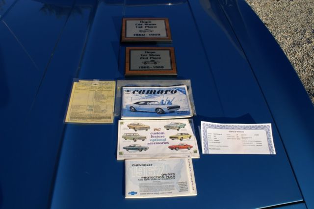 Body in great shape no rust repainted ten years ago, also rear quarters installe, inner fender wells good. Paint isin a number two condition still looks good some surfacing imperfection, still original color.Underneath cleaned andrecoatedalso engine compartment repainted when new drive line was installed.Great driving around condition and with the added sound of real horse power makes ita real head turner. Very dependable and mechanically soundwhether your flying down interstate orcruising main. Standard steering and brakes. Complete new brake job done.Car was originallya 327ci power glide with a 10 bolt rearend and shift on the column. Have standard steering collar notinstalledyet.Car has always been garaged and maintained. Two owners before myself, have original documentatio, bill of sal, protect-o-plate, owners manual also a thickfile of recites of all new parts and work that was done to the car. All lights work, windows good shape if theirs any thing I forgot I will be glade to answer any questions. If you can come look at this Camaro and drive it. I will be thankful for your interest in bidding on the auction andas a added incentive I greatly reduced the reserve price under what I have in the car and I'm offering free shipping to lower 48 states,by refutable carriers that e-bay recommends. All thesame old rules apply, payment clearingbefore shipping. $500.00 down payment 24 hours after winning auction to pay pal. Accepting casher checks, cash or wirer transfers.