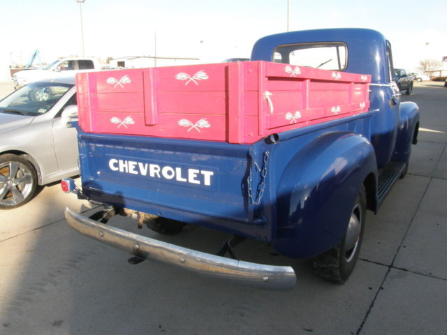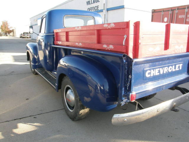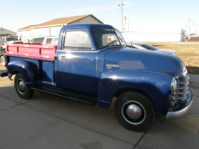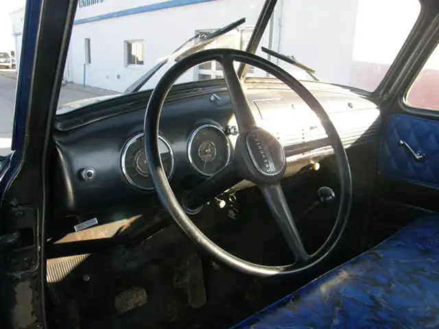 Original owner since 1950, bought new and in the same family since. 62812 actual miles. Was always kept inside.Sometime in the 80's it was repainted and the seat recovered. It was started every once in awhile but basically has been in storage for 30+ years. Has the original motor and 4 speed trany. There is no rust on this pickup. The cab corners are solid as is the rest of the pickup.Put on new fuel pump, point and plugs and new brake master cylinder. Runs great and stops like it should.