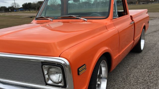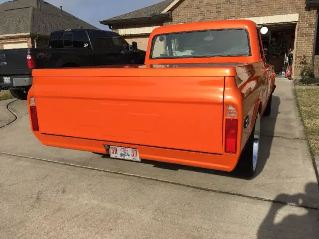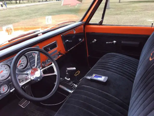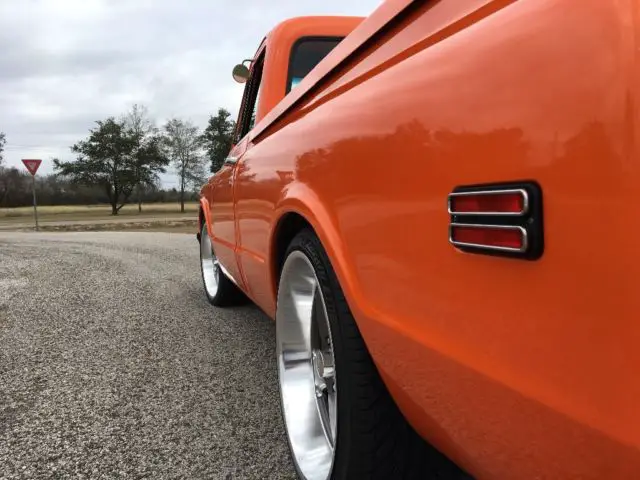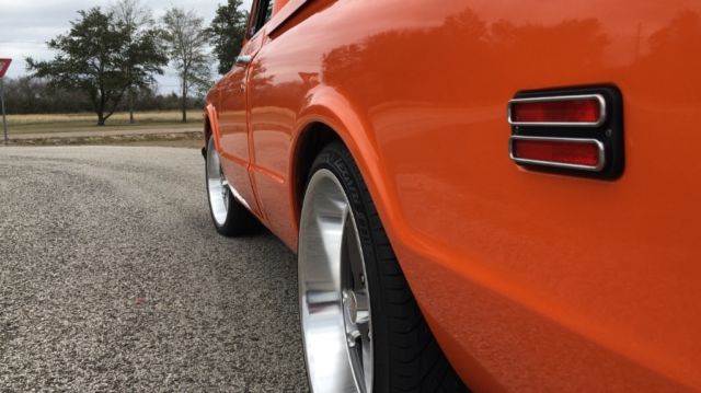 69 C10 5.3l LS bored to 6.0, carbureted, cam, headers, FAST EZ TCU, much much more.Fresh Built 4L80 trans (good for 700hp)22" billet wheels 9" front 11" rear wrapped in Pirelli tires.House of Kolors Tangelo Pearl Shimrin 2 paint. Driver quality..has a few blemishesRelocated aluminum gas tankFiberglass tonneau coverAll new interior. Billet instrument cluster, steering wheel, new carpet, new seat with Chevy emblem, new door panels, chrome glove box door, new dash pad, new white face Autometer "phantom" gauges.New pioneer stereo with 4 channel amp pushing 2-10" subs & 2- 3way 6x9's.Power brakes w/chrome booster & master cylinder.Power steeringAluminum 3 row radiator with electric fan.Chrome hood hinges and latch/handle.