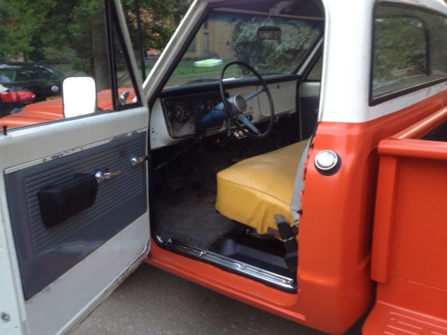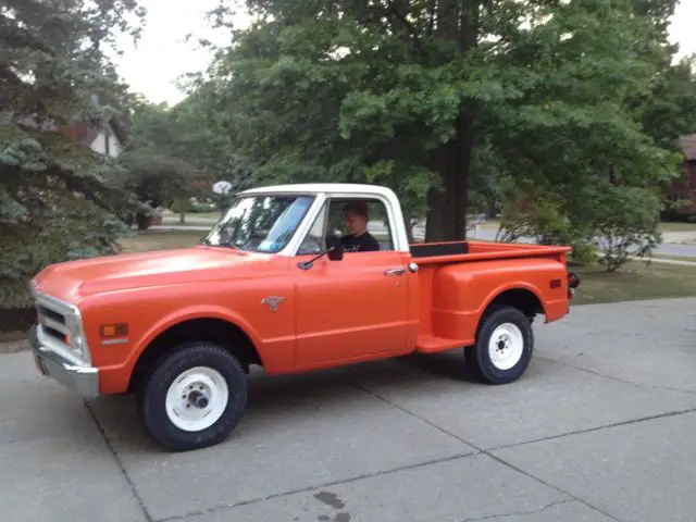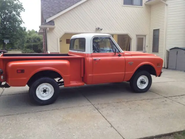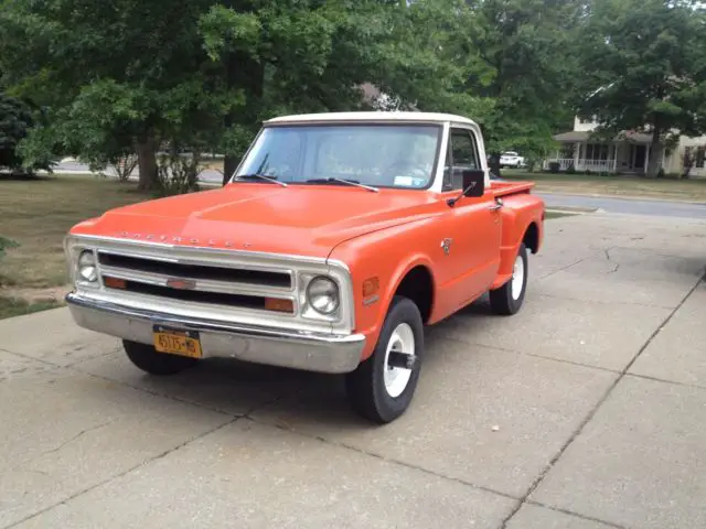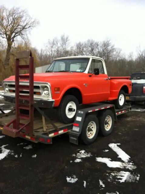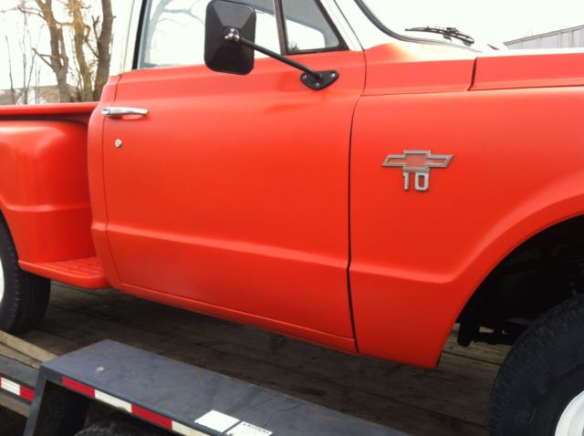 1968 C10 ORIGINAL 4 X 4 SHORT BEDSERIAL NUMBER STARTS WITH K ORIGINAL FACTORY BUILT 4 X 4MOTOR STRAIGHT 6 WITH 4 SPEED TRANS NEW REBUILT WITH 2000 MIKES ON IT, 4 X 4 LOCK OUT HUBS ALL WORKING,NEW CLUTCH, BRAKES, BRAKE LINES, SHOCKSSTRAIGHT 6 WITH 4 SPEED TRANS RUNS AND DRIVES GOOD. BODY AND FLOORS SOLID DRIVER NOT SHOW TRUCK COULD BE FINISHED TO SHOW TRUCK. FRAME CLEANED BLASTED AND PAINTED,CAB AND BOX HAS A REPAINT WITH DULL FINISH ROOF WHITEWAS NOT REPAINTED. NEW DASH PAD DOOR HANDLES.LIST OFF EXTRAS INCLUDED THAT COULD BE USED TO RESTORE TO PERFECTIONTWO STEEL FRONT FENDERS 25 YEAR OLD SOLID REPLACEMENTS.POWER STEERING BOX WITH PUMP TO UPGRADE FROM MANUAL.NEW SLIDING REAR WINDOW.FULL GAGE CLUSTER DASH.