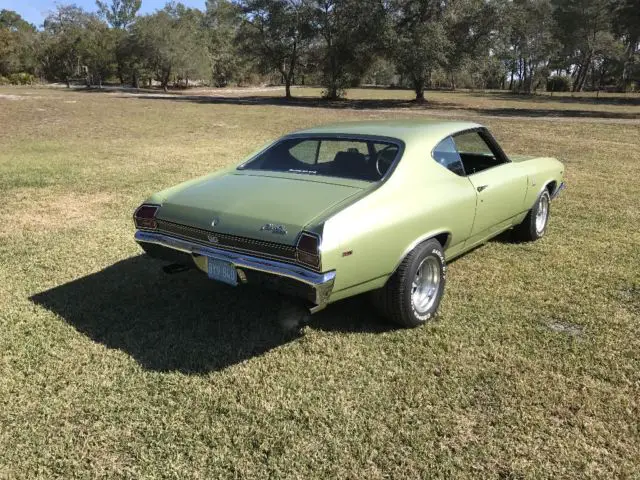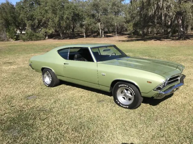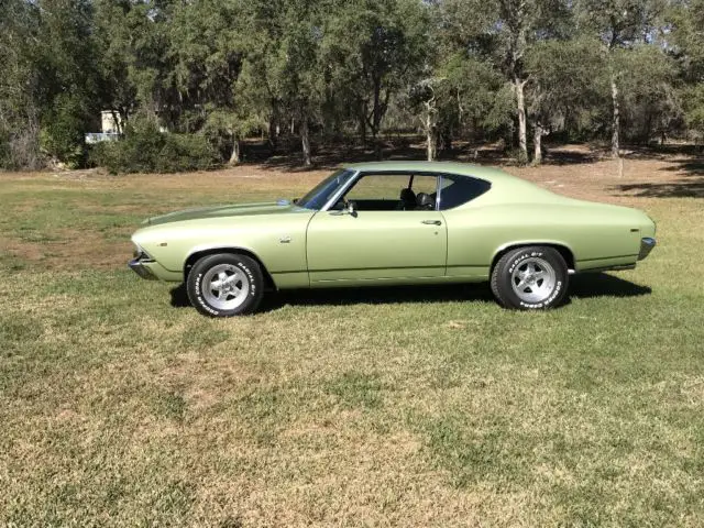 1969 Chevelle 396 automatic,Factory Air Car,has undergone a body off restoration,frame was sandblasted and painted,bottom of car was finished when it was off the frame,had new One Piece trunk pan installed the correct way and looks factory,had all new body mounts installed,new springs and shocks,front suspension is tight and it drives great,has Factory Quarter panels that didn't need replacing,factory floor pans were Nice,car is refinished in its Original Frost Green color,a couple areas with small rust spots were cut out and metal welded back in,No Rust Was packed with filler.Car has a Complete New Black Factory Bucket seat interior from the Headliner to the Carpet,door panels,dash pad,Complete New interior,with Factory Console and Factory Floor Shifter.All New weatherstripping,New Roof Rail seal,New Window felts,New Bumpers Front and Rear,New Tinted Windshield,New Hood Grills,New Taillight lenses and Bezels,New Marker lights and bezels. Engine is 1969 396 with a Healty sound and a slightly lumpy idle,it carries Great oil pressure and runs 180-190 even in the Florida Heat,it has a Crisp Shifting 700 R4 automatic with the Factory Floor Shifter being converted to 4 speed with correct shift gate and shift indicator plate.Paint on the Car is as good or better than they were factory but could still be wet sanded and buffed as it has not been done since paint,Really Nice Quality Driver,that's Not 45-50k and You don't have to be afraid to Drive,The Chevelle is For Sale Locally and Auction may end at anytime up until Reserve is Met,at that time Car Will Only be Available on E Bay.Any Questions Can Be Directed to 386-804-0076,Thanks for Looking and Good Luck on Your Quest for Your New Toy..