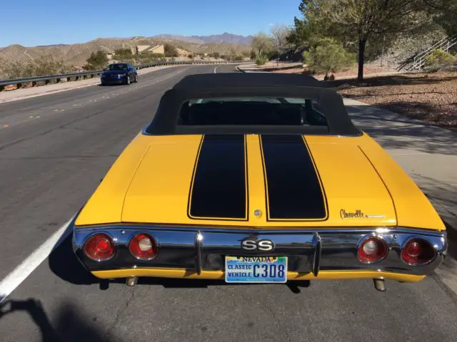 This is an un-restored factory original SS car. The original, VIN matched engine and transmission are not currently in the car, bar are being sold with the car. Winning beddier receives the car and original eninge and trans on a crate.The current engine is a GM Performance 350. 69,000 original miles. Car looks, runs and dives great...turn key ready to go and be driven and enjoyed. Car is located in Las Vegas NV. Convertible top has been replaced, the interior, seats, carpet, upholstery etc are all original, right down to the factory working 8 track radio. If car is sold to out of state buyer, the buyer will be responsible for any all shipping once payment has been secured. call 702-461-4584 for any further info.