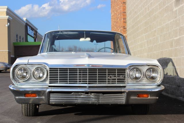 Good running 1964 Chevy Bel Air with a straight six engine and three speed manual transmission. The car runs and drives down the road fine. The body and the paint aren't perfect but it looks good overall. This isn't a rust free car but most of the body work has been done. The 6 cylinder fires right up and runs smooth. Transmission shifts like it should and clutch is good. All the glass is good on the car and the windows roll up and down easy. Thecarburetor was rebuilt, new pitman arm was installed, nd it has a new gas tank. The tires are almost brand new and the brakes work well. The title is clean, lear, ecent, nd in my name.