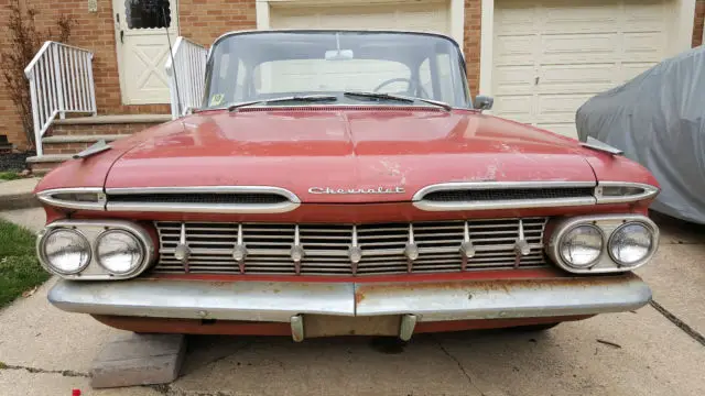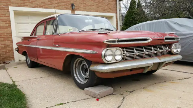 Awesome Chevrolet to get running, ut some big oldtorque thrust style wheels on it, hen set the stance low, nd ride it on local cruises!Please bid on this vehicle if you're completely comfortable with purchasing this vehicle. A deposit is required immediately, nd full payment is required within 3 business days. I ask that you please discuss any possible exceptions to these listing rules prior to bidding comfortably.The 1959 Bel Air is sold as is. There is no warranty implied, iven, r stated. It is a project, o please understand what you are purchasing. I'll attach a lot of photos and will send more if requested.Sold As Is