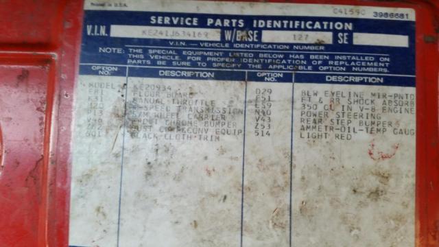 The truck has the original factory 350 engine that was rebuild approx 4000 miles ago. The previous owner also had a new clutch, EI ignition, nd tires installed at the same time. The 4 speed transmission shift perfect as does the transfer case. Starts with no issues and runsgreat.Also comes with the original Big blue hub 4x4 lock outs that are pictured. Period era mile marker hubs are currently on the truck now.