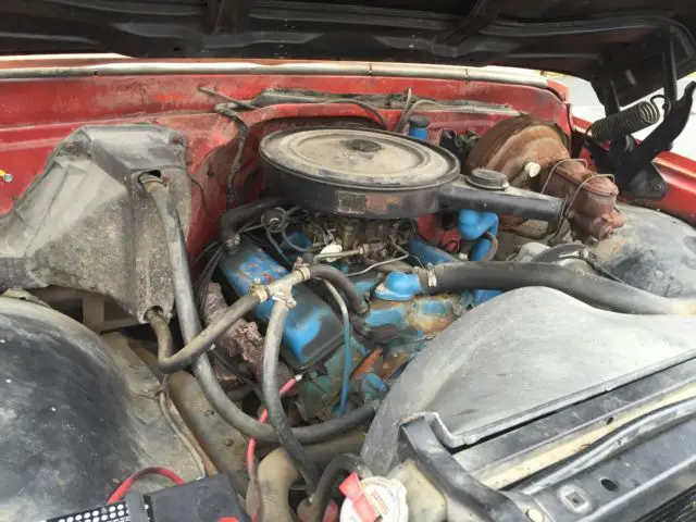 The truck is originally from Montana and has minimal rust in the body.The paint is the original 524 red and still has the factory Disc Brake sticker on the tailgate. The frame is in great condition and the only rust through I can find is in the rocker panels,battery tray area, nd a small spot on the passenger side cab corner. Floor pans, oors, ed, nd fenders all look good. There are dents and dings on this truck, t will need body work, ut very little rust repair. There has been some previous body work done on the passenger side bed panel and I do have afactory side bed panel that is in great condition that goes with the truck.