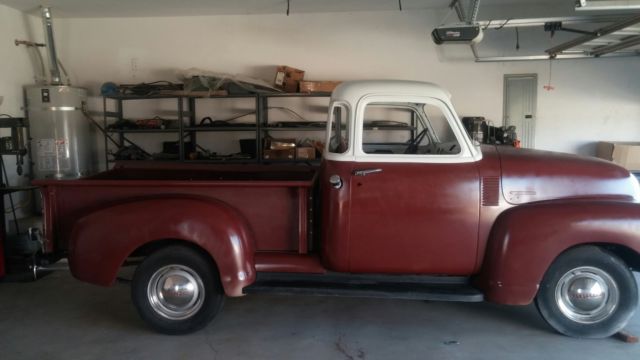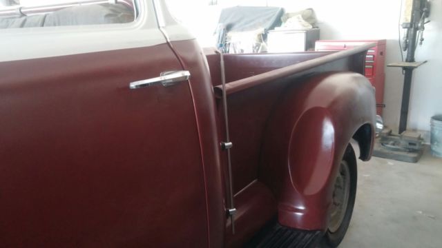 1949 CHEVY TRUCK5 WINDOW 1/2 TON 3100ALL ORIGINAL W/ ALL OG TRIMCA TITLERUST/ROT FREERUNNING 235 INLINE V-6OG ACCESSORIES (SPARE TIRE CARRIER, ELLOW PLATES, ULTON VISOR, NDIAN MARKER)GM WHITE TOP W/ RED PRIMER TWO TONE