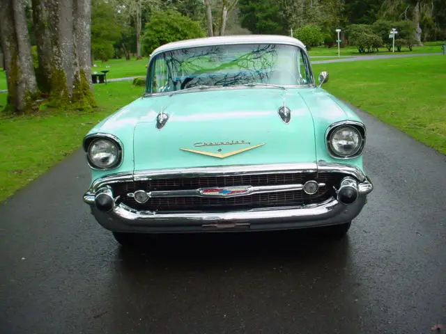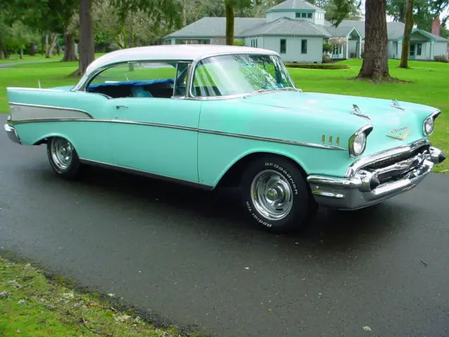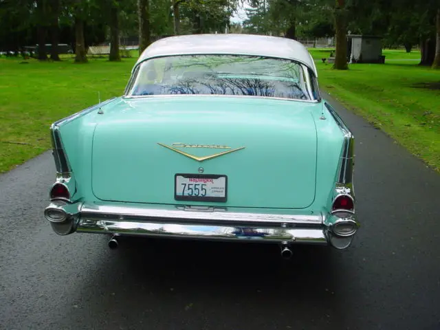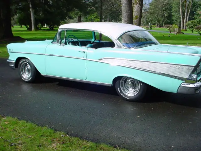 For sale is a 1957 Chevrolet BEL/AIR 2DR. HT. This car shows 85K on the odometer and was said to be accurate by the previous owner, ut I have no way to document that. The 57 is a very solid car with little to no rust. This was a California car which explains that solid condition of the sheet metal. I've included a picture of the trunk area to give you an idea how little rust this car has. All of the glass is in great condition and rolls up and down as it should. The chrome and stainless is in exceptional condition for a 59 year old car, gain I feel this is because it spent most of it's life in a dry climate. The car is mostly original except the running gear has been upgraded to a 350ci engine and a TH350 automatic transmission with a very positive shift kit. A sway bar has also been added to the rear axle which gives the 57 a good solid feel on the road. The paint shows better in the pictures than it really is. It is a good 50 footer. The interior is very original material, t shows wear on the drivers bottom cushion and dry rotted on the top of the back seat, hich could be corrected by just replacing the top vinyl portion. The car has complete new brakes from drums to hoses with less than 20 miles on them. The battery is also less than a month old. The car starts and runs good and the dual exhaust system sounds good as well. This car is equipped with factory P/S and it works well. The dash as well as the rest of the interior has not been molested in any way. All the lights work including the turn signals, he wipers work, ven the original radio works. Sorry the clock doesn't work, ut I've never seen one that does. The body is very straight ans appears to have little to no bondo areas. This 57 is an excellent candidate for restoration because it is so solid and original. Because of it's age this vehicle is sold AS/IS, HERE/IS. The buyer is responsible for transportation or shipping of the vehicle however I will help coordinate with your shipper. If you have any additional questions and want to talk to me about this car please call me at: 253-677-8400 ask for Ralph