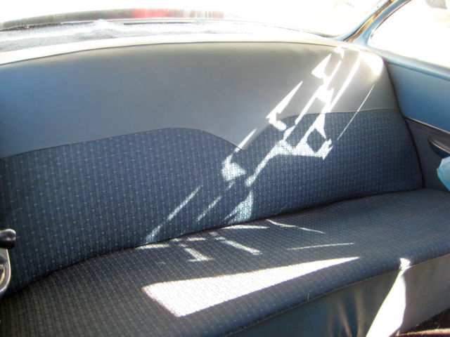 Overall solid straight body. Driver two tone blue & white paint decent from 10 ft. My plan was to repaint it back its original 585 Onyx Black making it a tribute American Graffiti car (will def up the value). The trim is pretty decent on the car. Lots of good chrome prior owner replaced. Glass is good intact. It has Slotted Aluminum wheels with radial tires (she rolls). The Blue interior is original I never touched it even the headliner I think looks cool. Frame is straight & solid, floors are most original one small patch on drivers side floor look decent, trunk floor and rear shock towers see pix are okay. The engine compartment is ready for either motor to go right back in.